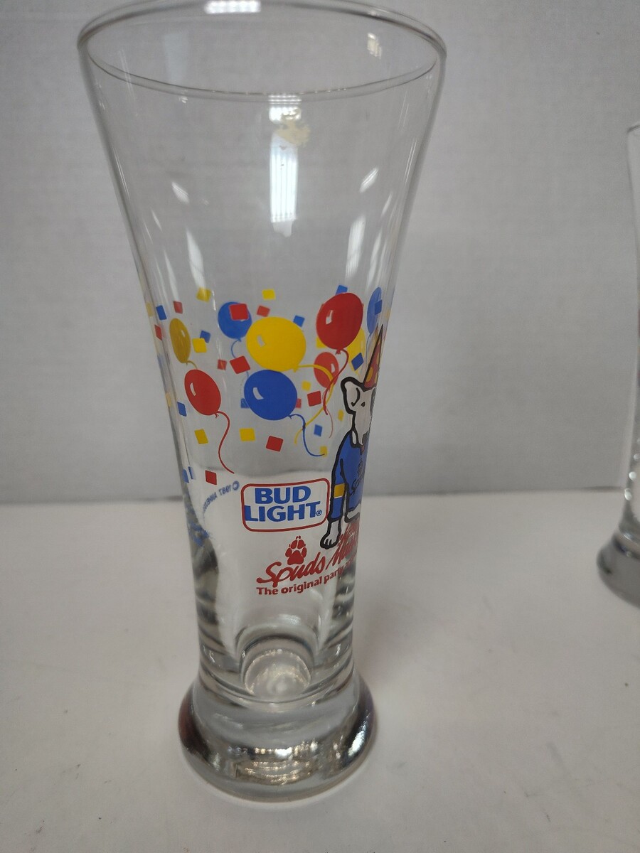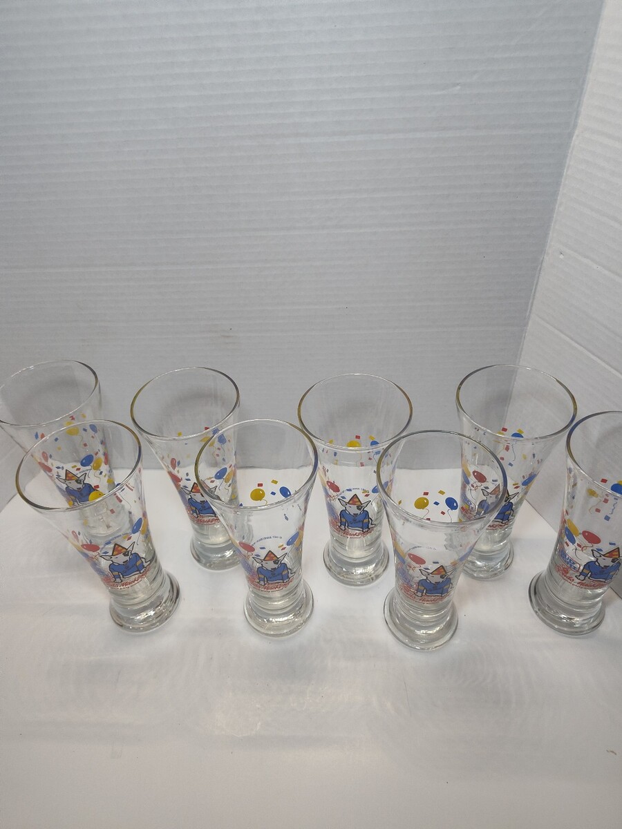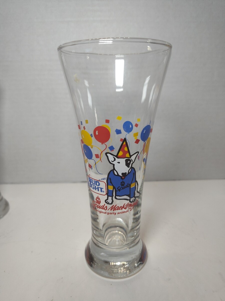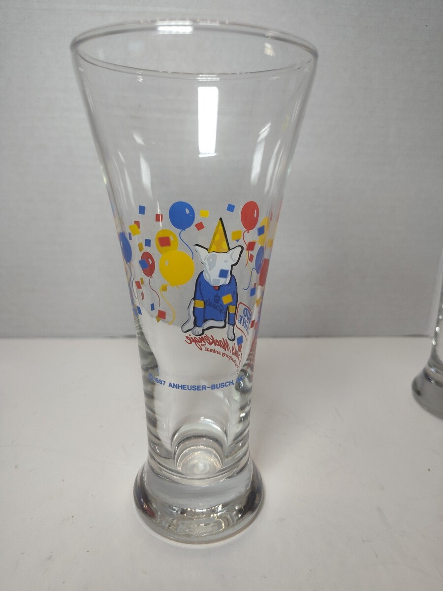 - 8 Vtg Spuds Mackenzie Party Animal 7" Pilsner Glasses 1987 Budweiser Beer - MINT