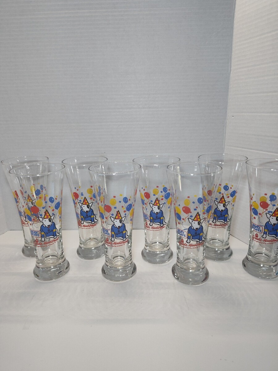 8 Vtg Spuds Mackenzie Party Animal 7" Pilsner Glasses 1987 Budweiser Beer - MINT