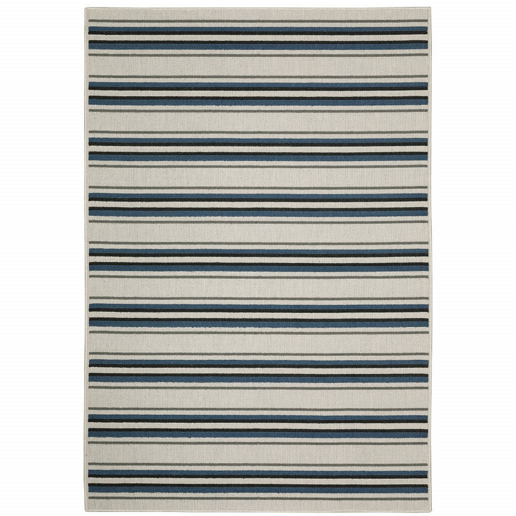 - 8 X 10 Blue and Beige Geometric Stain Resistant Indoor Outdoor Area Rug