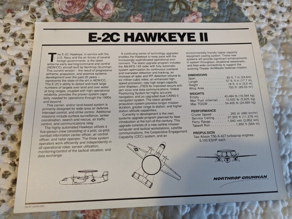 8 x 10 Color Photo Card Northrop Grumman E-2C Hawkeye II (2/97)