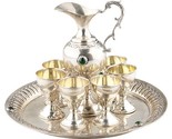 800 SILVER TRAY, PITCHER + 6 SMALL CHALICE CUPS GOBLETS
