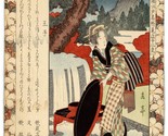8058.Japanese woman with kimono in house beholding tray.POSTER.art wall decor