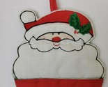 80s Christmas Stocking Santa Claus Applique Quilted Holly Jolly St Nick Vintage