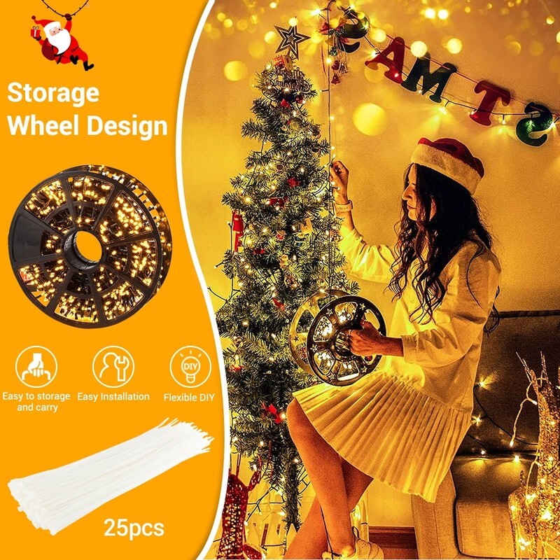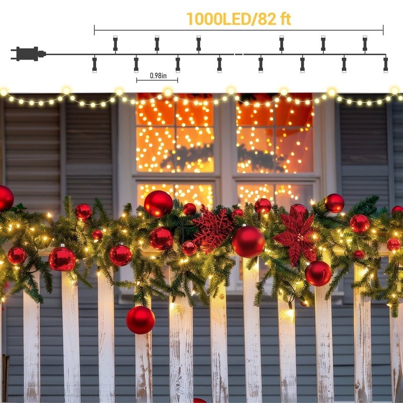 ??1000 LED Christmas String Lights:The 82ft warm white Christmas string lights is perfect for enhancing your home decoration and creating a welcoming atmosphere for gatherings. These lights brighten up dark spaces and evoke a charming, romantic ambiance. Please note: These LED string lights cannot be connected to other strands for extended length.