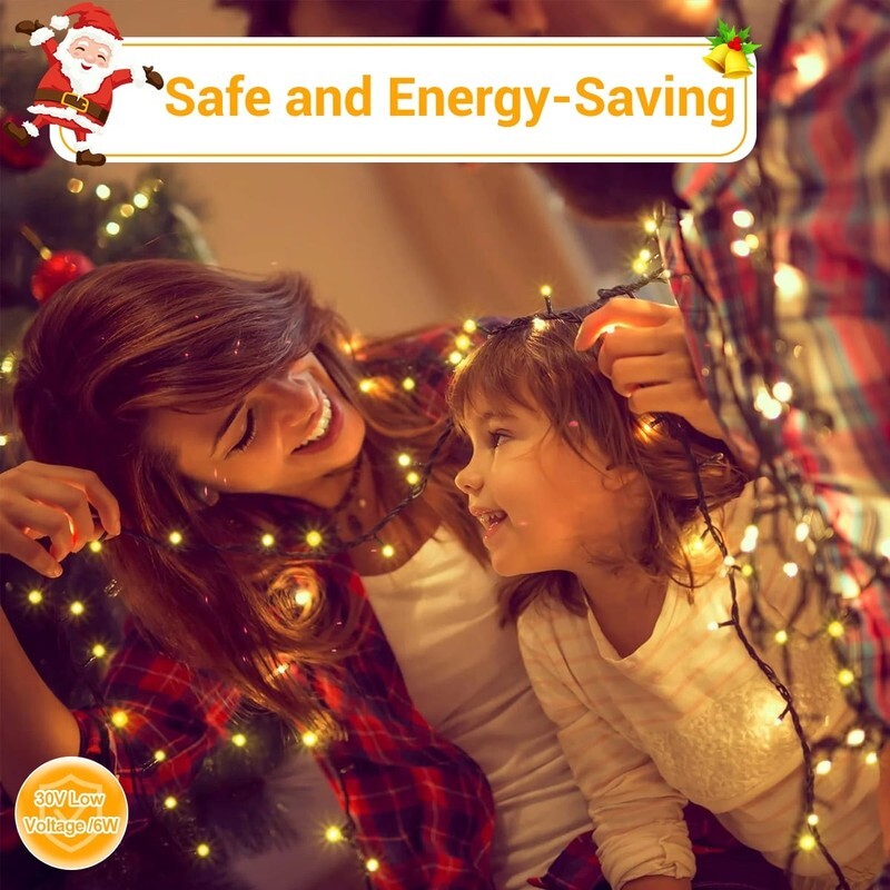 ??Safe Energy-saving: Crafted from 100% copper wire, these outdoor Christmas fairy lights remain cool to the touch even after hours of use, ensuring safety in homes with children. The design includes short-circuit protection, providing peace of mind while you enjoy the festive season. With a low output voltage, these fairy lights are a safe choice.