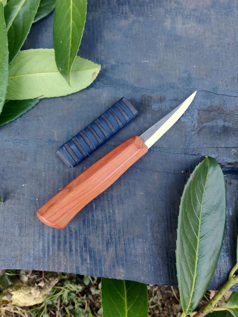Carving blade made from very tough and hard stainless steel AEB-L from Alleima (Sandvik).