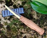 Carving knife made from hand-forged high carbon steel blade, dyed ash wood handle.