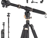 ??Professional Stable horizontal Tripod? Made of aluminuma alloy, Max height of heavy duty tripod is 86.6in/220cm, 32 mm extension arm support your camera gear up to 26.5lb/12kg. The tail is comes with a carabiner which can hang sandbag or other heavy objects to increase stability. The center column can be inverted for easy low Angle shooting and macro photography. Easily adjust the leg angles, heightor remove one of the legs and use it as a monopod. ??Multi-functional and Detachable at will?Tripode, extension arm, ball head can be used separately, can be combined according to their own use, can break through the single function of the ordinary product. Adjustment any height, use flip lock, easy to operate, folds down to 27"/69cm. ??Multi Angle Center Column?can take 360-degree panoramic and up-down180-angle shot shooting, can expand a higher and wider shooting range. The top of the extension arm is designed with two 1/4 " screw holes, And the magic arm can be installed in one of the screw holes to expand the use of the machine position, which can be connected to the camera, led lights, mobile phones and other devices. ??36mm Panoramic Ball Head?can rotate 360 degrees freely, so that you have any shooting Angle. The quick release plate screws size is 1/4'' and mount can be quickly attached to almost all cameras, 2 bubble levels to keep your photos look straight. ??Multi-scenario use?Tripod for camera is used to video recordings and photographing activities such as other indoors and outdoors activities. Provide more possibilities for simultaneous operation of more equipment. ??Packing list: tripod stand, 36mm ball head,extension arm, carry bag, magic hand with small ball head, Swivel phone clip,User Manual.