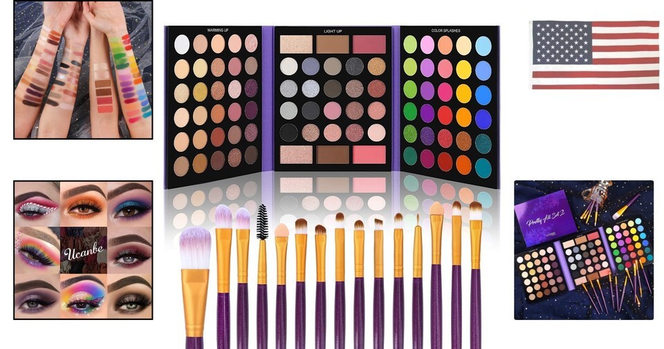 - 86 Colors Nude Eyeshadow Palette + 15pcs Makeup Brushes Set, Matte/Glitter, L...