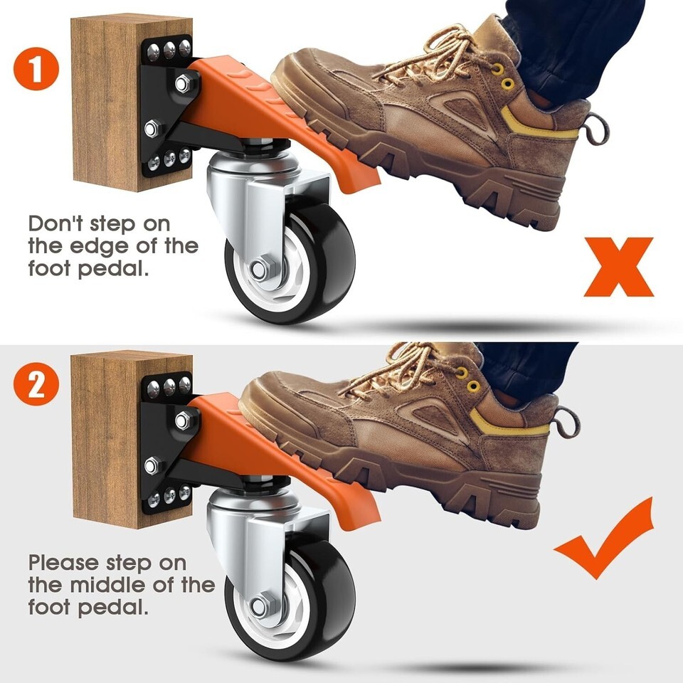 Supports up to 880 lbs, allowing easy movement of workbenches, tables, or furniture with just a push of a pedal.
