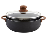9.0Qt Black Stone Aluminum Speckled Nonstick Caldero with Glass Lid & Wood Look