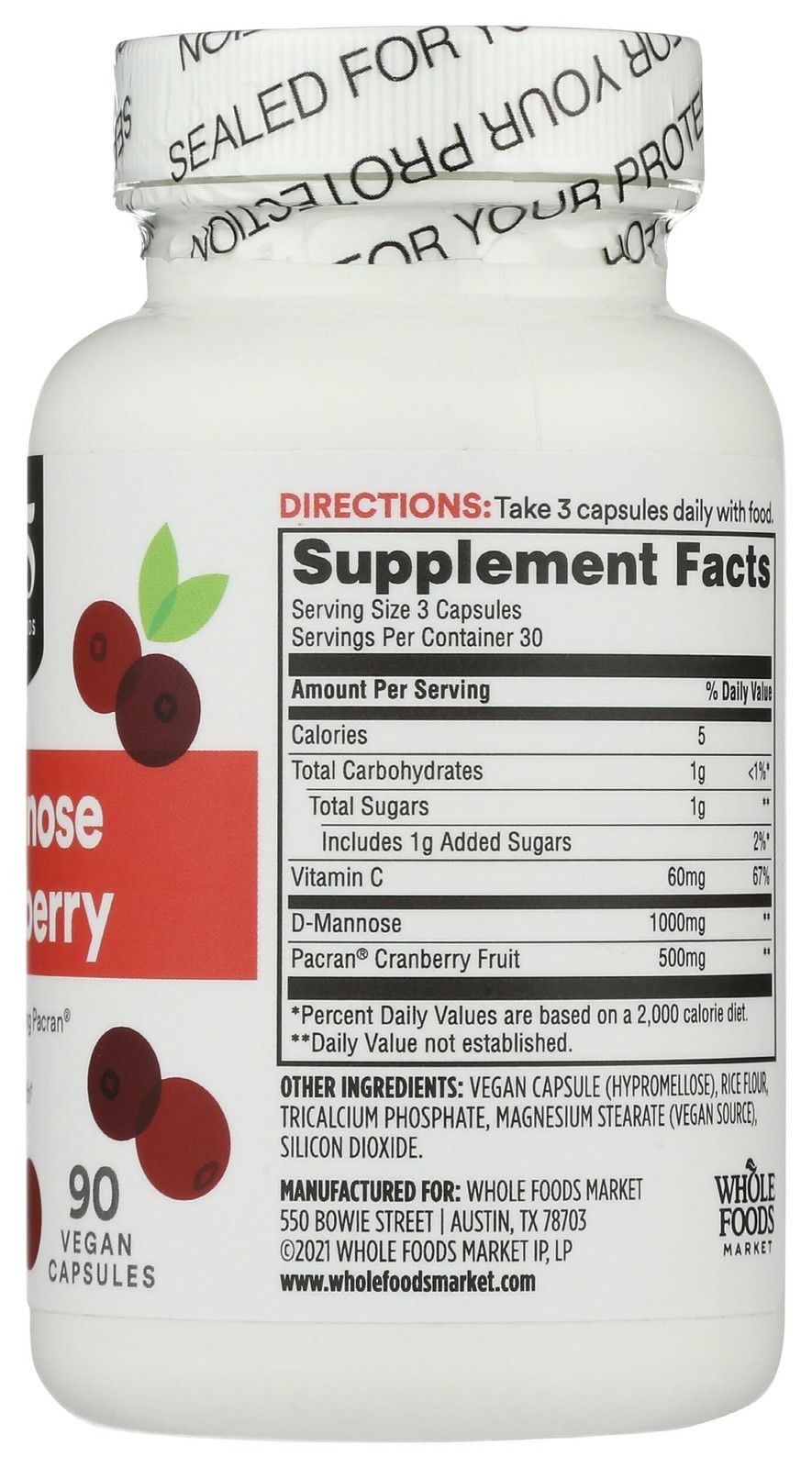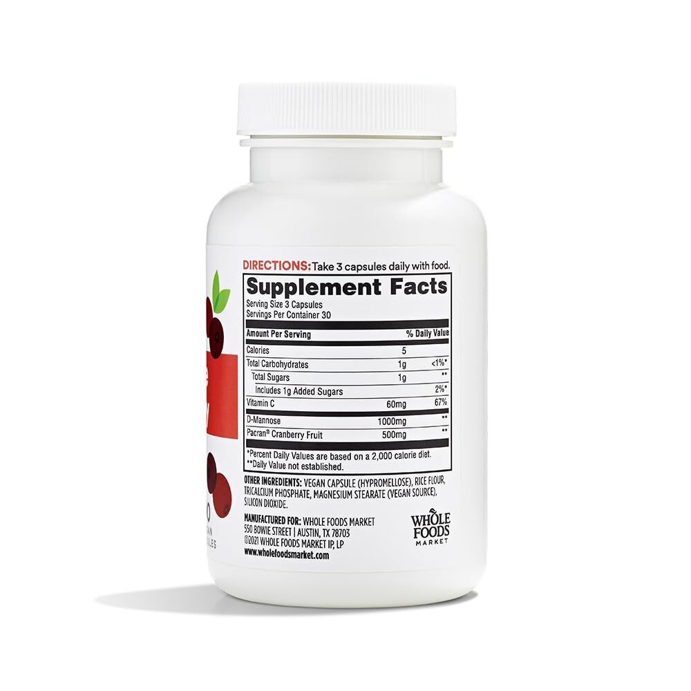 - 9/26 365 by Whole Foods Market, D-Mannose With Cranberry, 90 Count