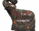 9.5" Black Marble Elephant Sculpture Semi Precious Inlay Pietradure Decor Gifts