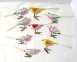 9 Clip on Glass Birds w/ Spun Tails Ornaments 3 Designs OWC + Unbranded