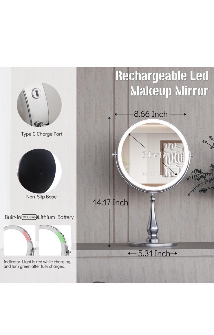 Cordless 2000mAh, 10X Magnifying, 360 Degree, 2-Sided, Adjustable |