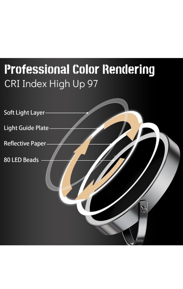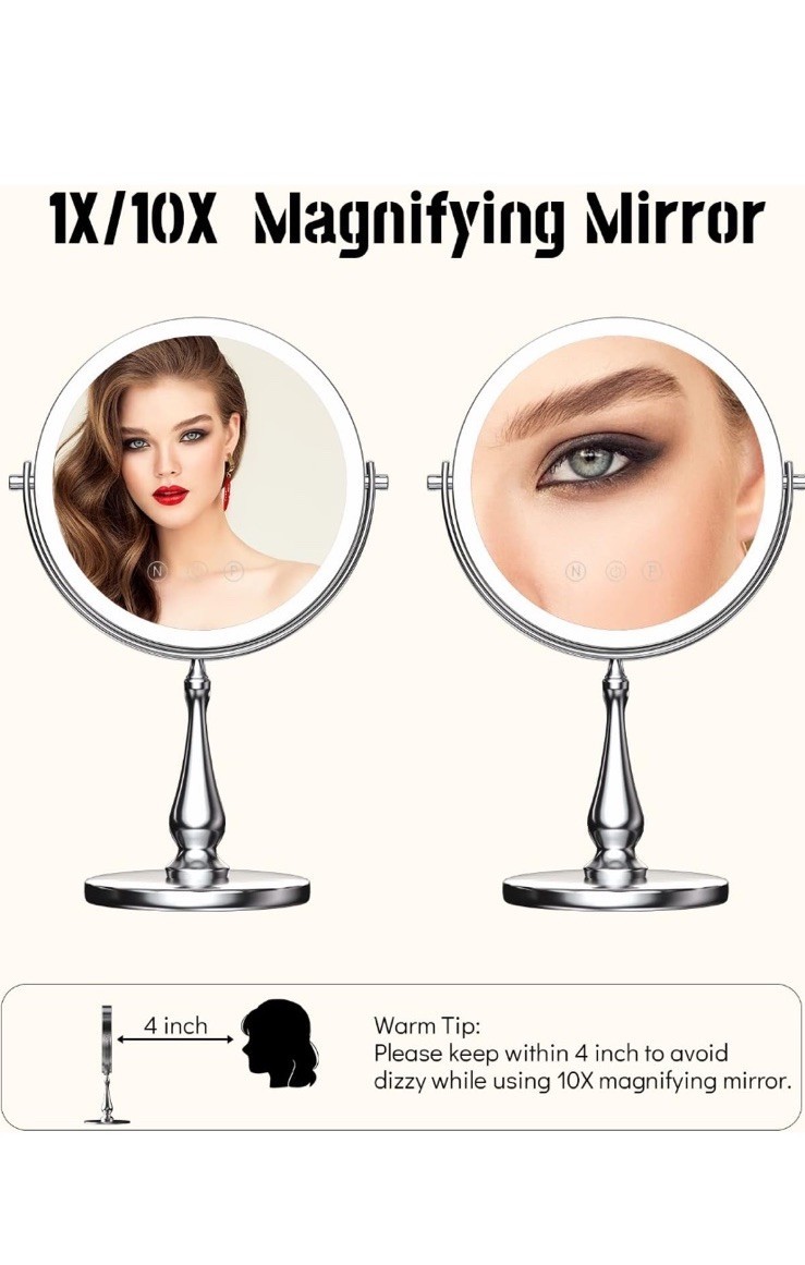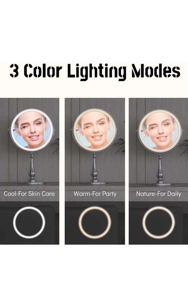 9" Large Lighted Makeup Mirror, 1X/10X Magnifying Vanity Mirror with 3 Colors Di.