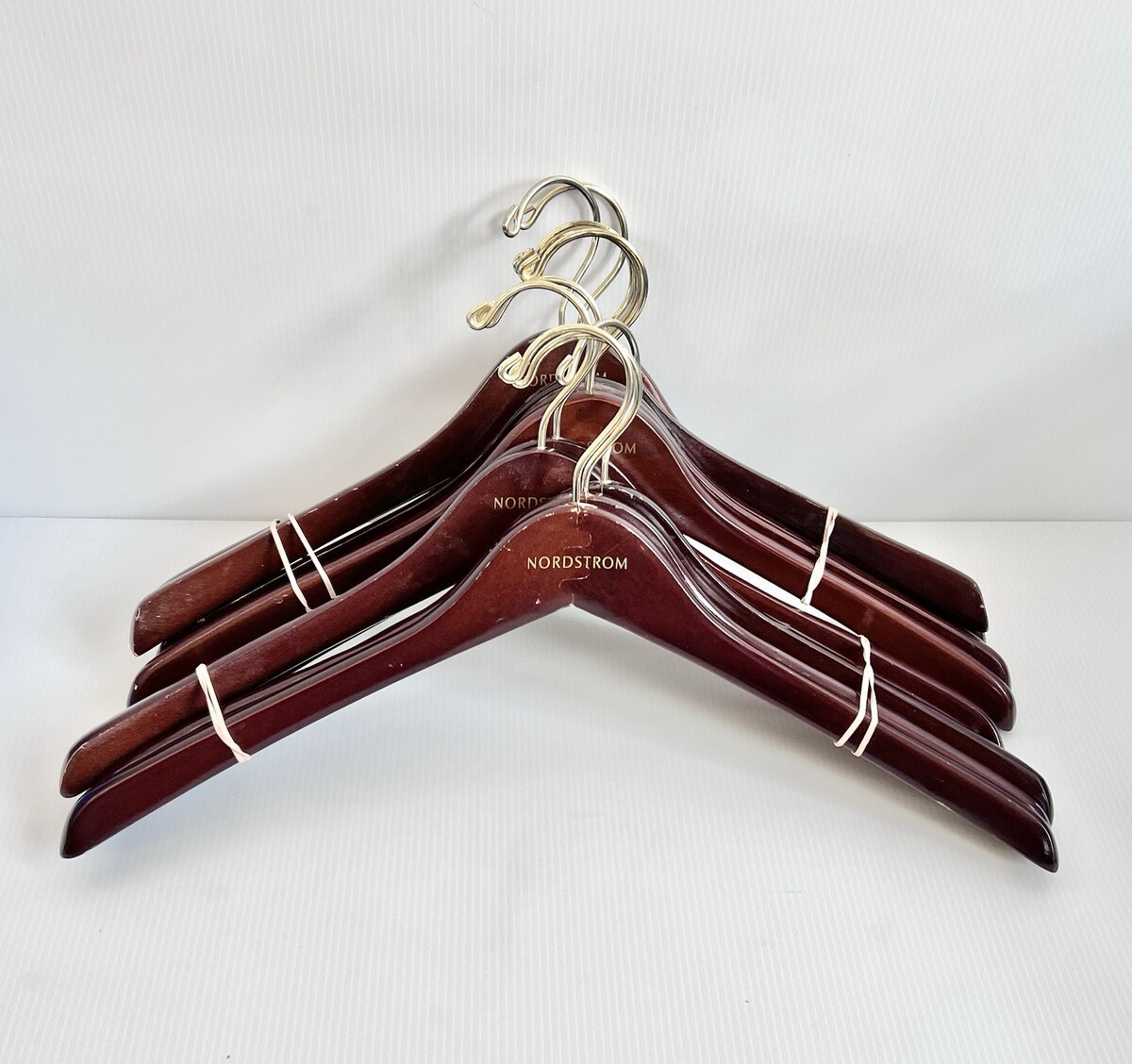 - 9 NORDSTROM Wooden Coat Suit Hangers Lot Of Nine Closet Gold Accent