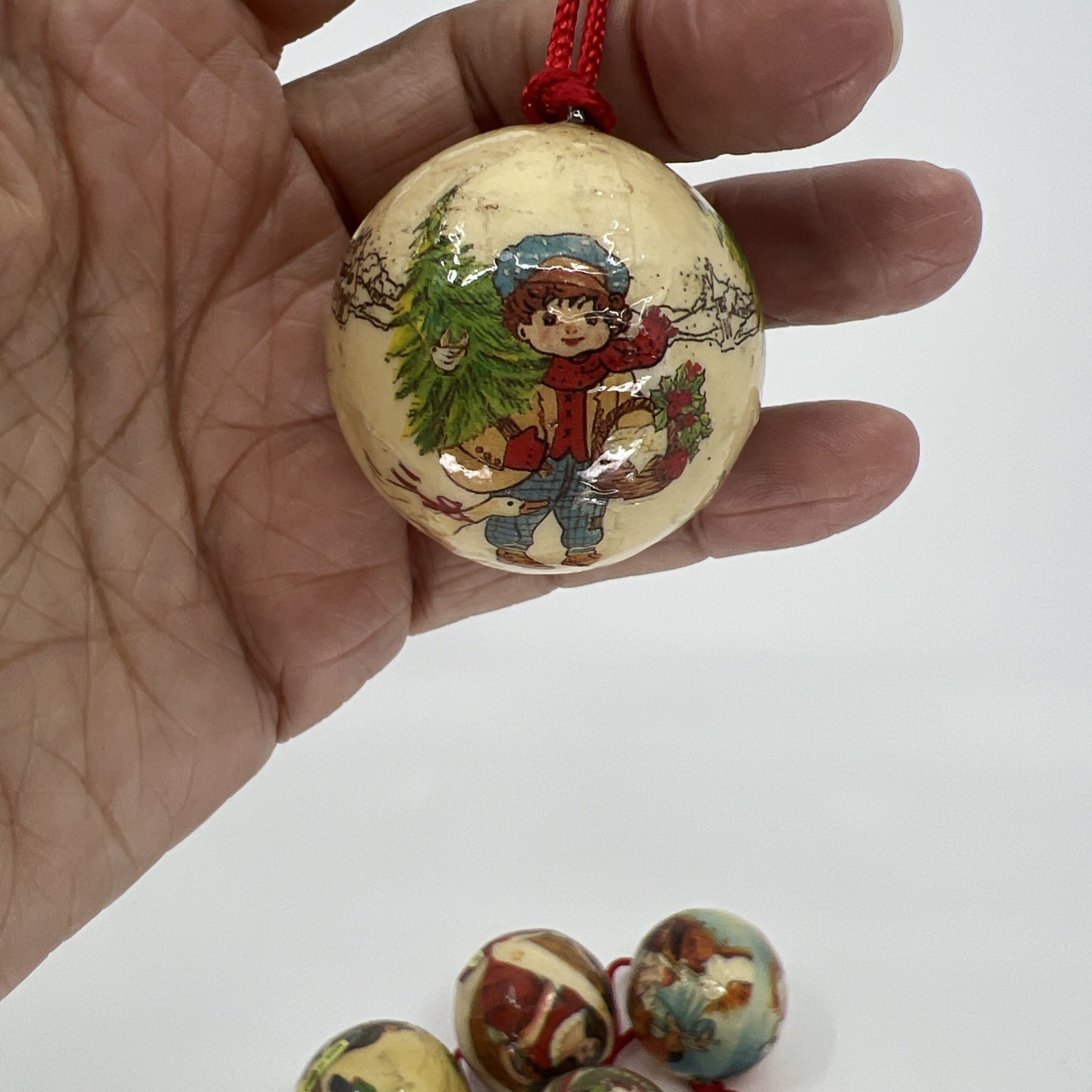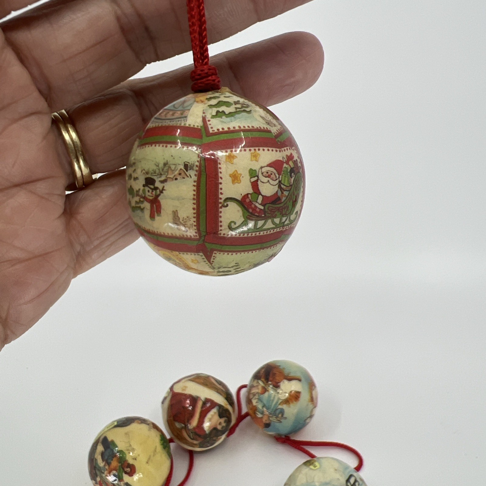 - 9 pc VTNG RETRO DECOUPAGE Ball Christmas Non-Break Ornaments Classic Cottage