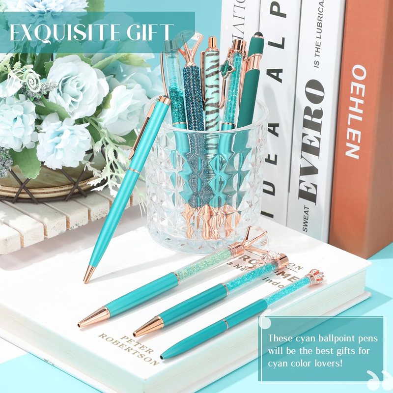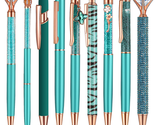 9 Pcs Ballpoint Pens Set Metal Crystal Diamond Glitter Pens for Journaling Black Ink Pretty Cute Things Fancy Stationery Gifts for Women Girls Birthday Home Office Desk(Teal)