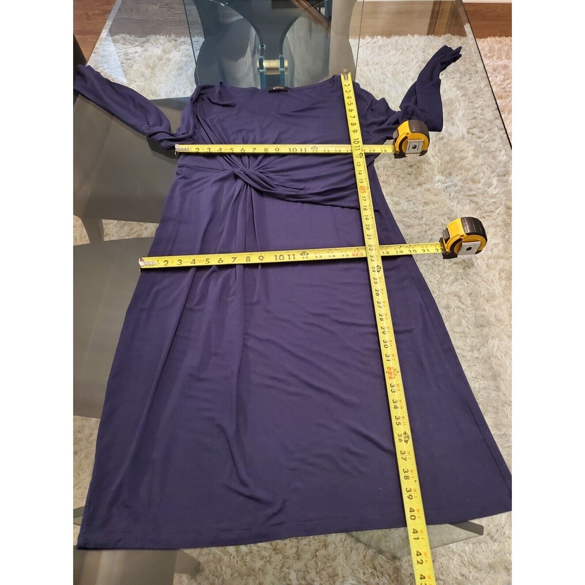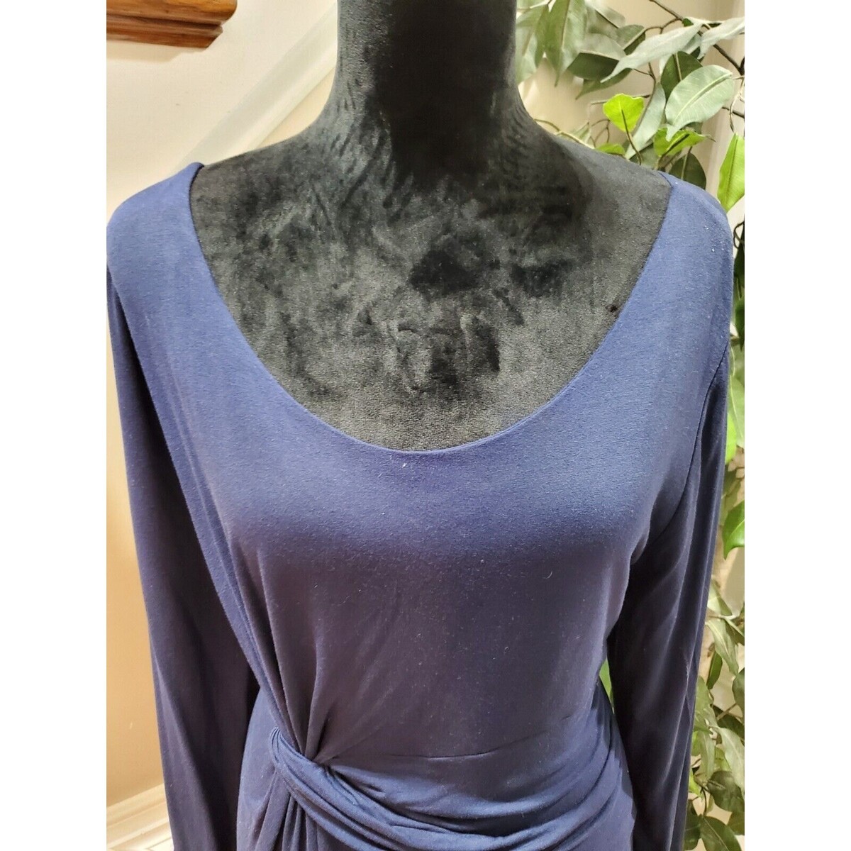 - 9 fashion Women's Blue Rayon Scoop Neck Long Sleeve Knee Length Dress Size XL