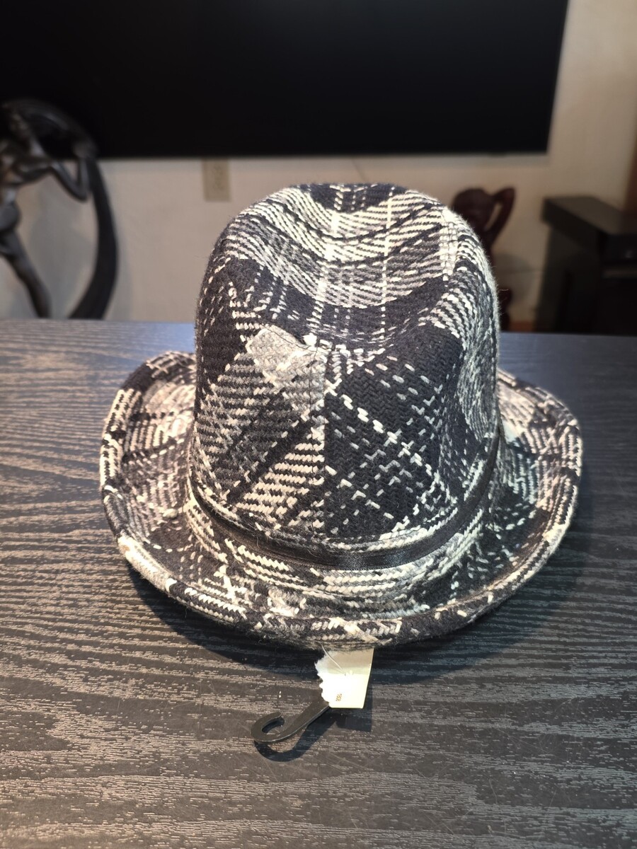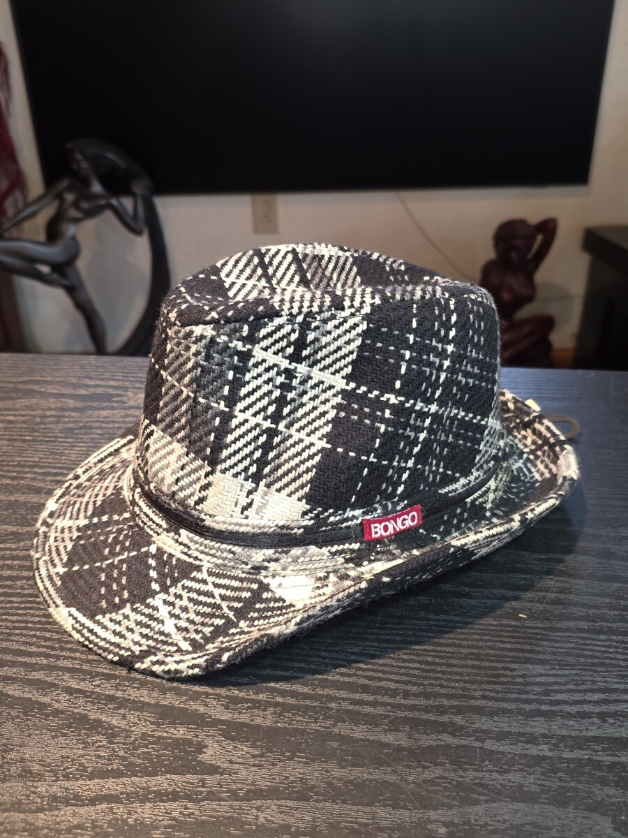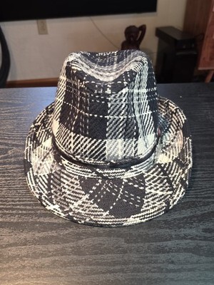 90s BONGO Black White Plaid Checkered Woven Bucket Hat Fedora Cap Women's