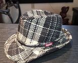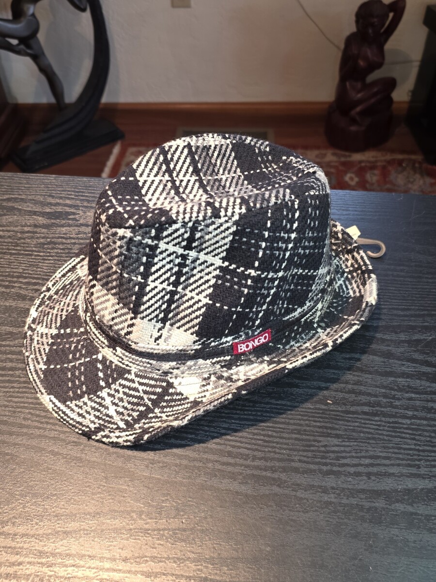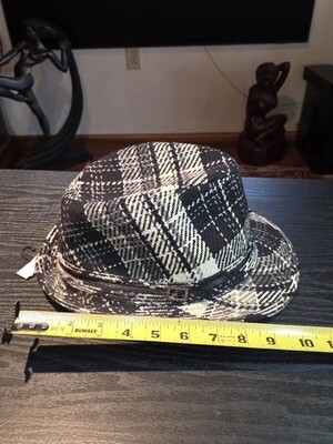 - 90s BONGO Black White Plaid Checkered Woven Bucket Hat Fedora Cap Women's