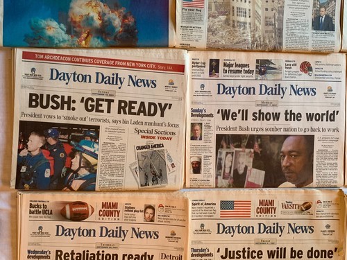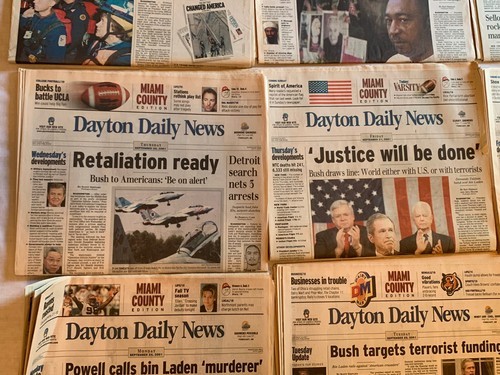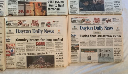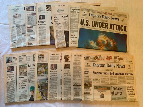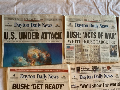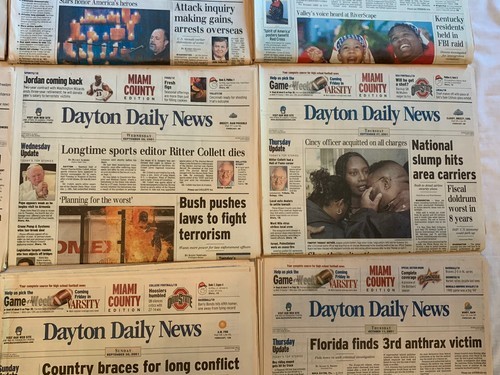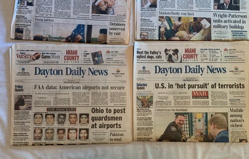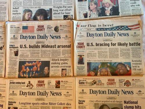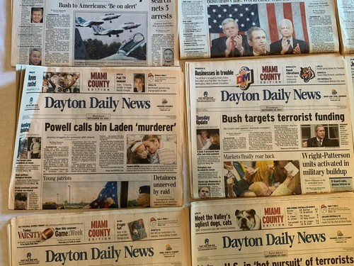 This is a lot of papers from the Miami Valley Ohio town of Dayton. If your following the controversy/conspiracy theories of what is happening in the world today, this was just very small part of it. A easy way to see how the 911 attack narrative was followed through in the media and how the government covered up the real truth on a daily basis showing in plain sight how manipulation/conditioning works by the masses. Hollywood even creeps in at times.
