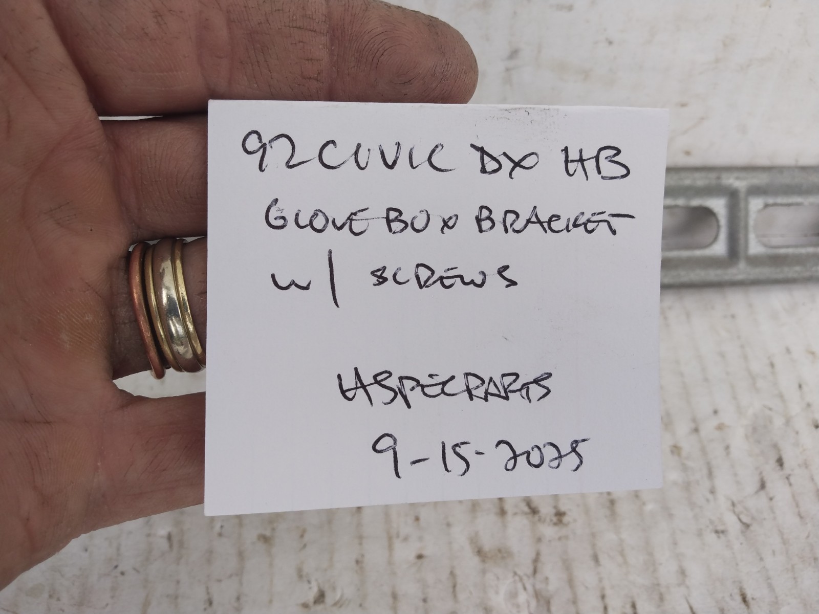 GOOD USED CONDITION. OEM GLOVE BOX BRACKET WITH SCREWS. FROM A 1992 CIVIC DX HATCHBACK. WILL FIT 94-95 CIVIC BUT KEEP IN MIND IT DOESN'T HAVE THE HELPER ARM/SHOCK. SHIPS USPS WITHIN A BUSINESS DAY OF PAYMENT.