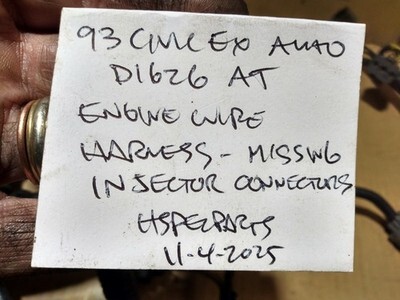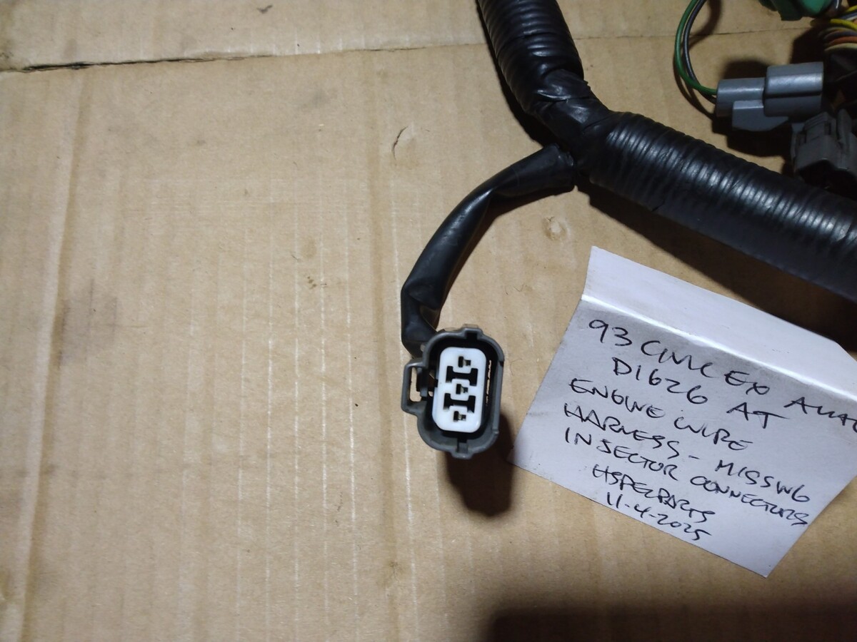 *MISSING INJECTOR CONNECTORS* OTHERWISE THUS HARNESS IS IN REALLY NICE SHAPE. 1993 CIVIC EX D16Z6 ENGINE WIRE HARNESS. ALL CONNECTORS WORK AS THEY SHOULD. LITERALLY JUST MISSING THE INJECTOR SECTION. SHIPS USPS WITHIN A BUSINESS DAY OF PAYMENT. SOLD AS IS NO RETURNS.