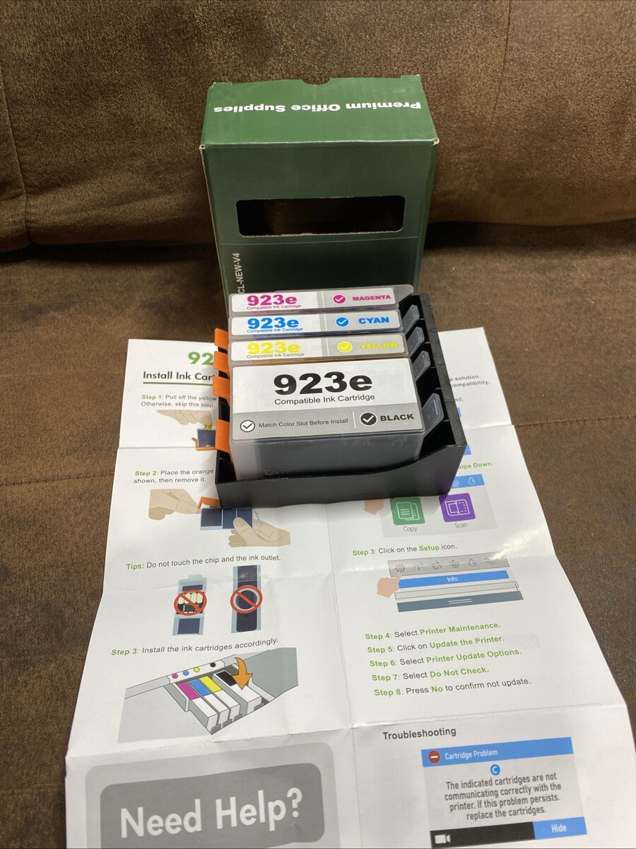 - 923XL 923e Ink Cartridges Combo 4-Pack for OfficeJet Pro 8120e 8130e with Chip