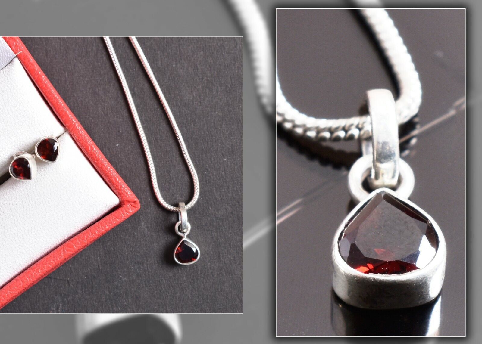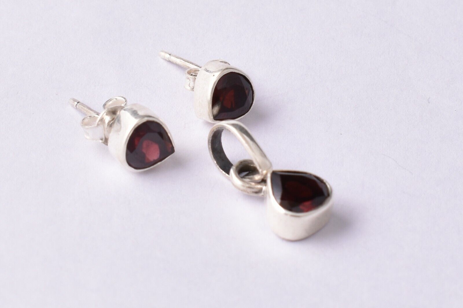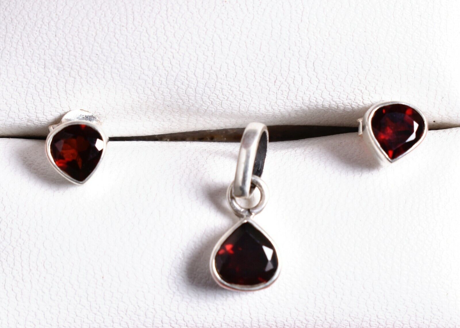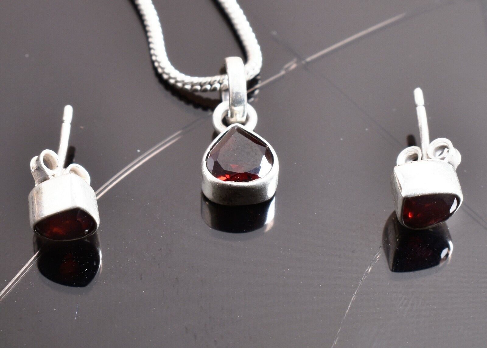 925 Argent Naturel Rubis Fait Main Femelle Pendentif Boucles Elle Cadeau Fête De