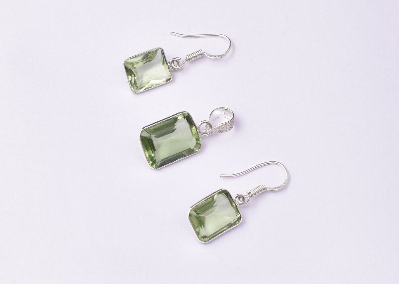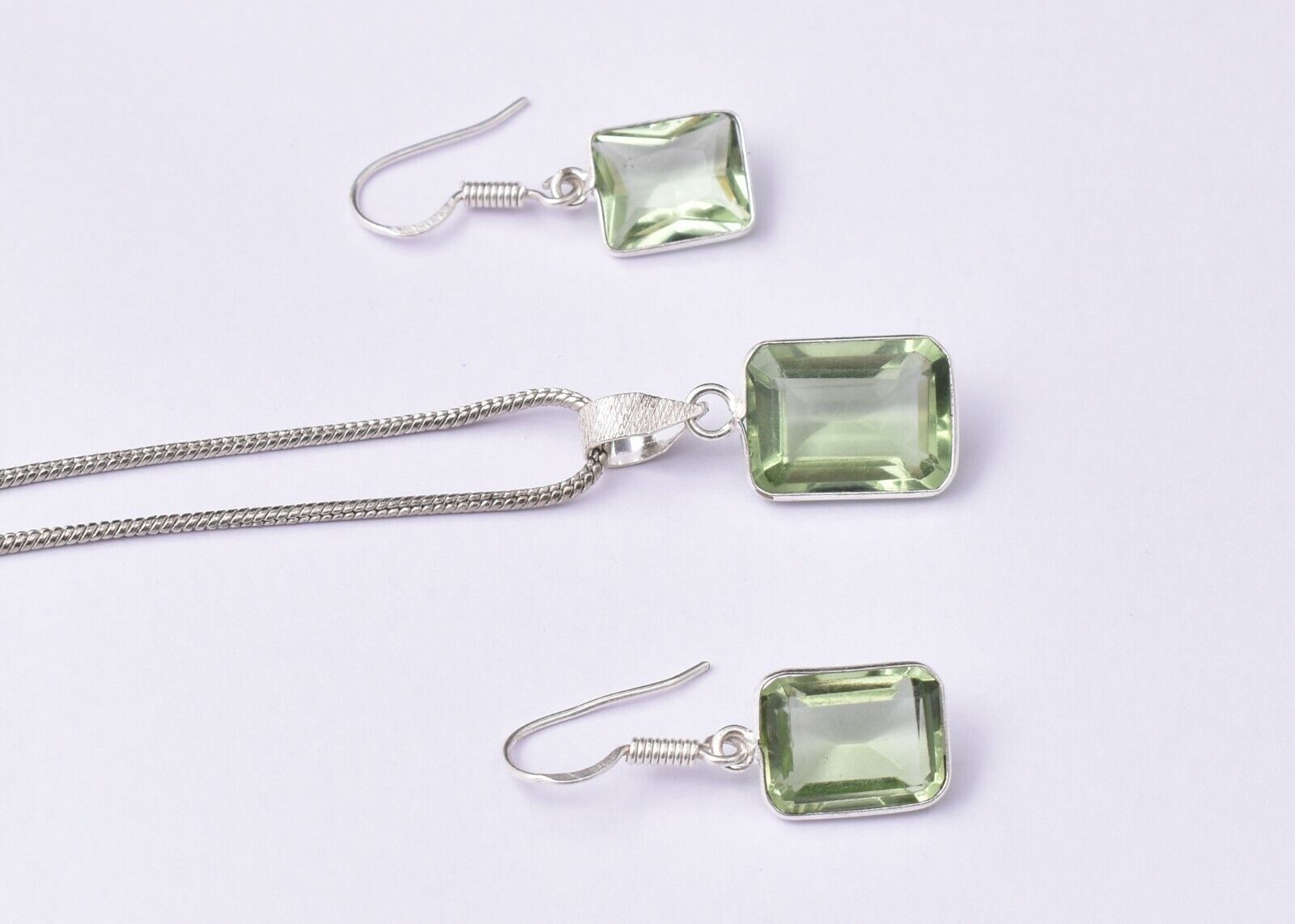 925 Argent Sterling Gemme Améthyste Fabriqué Main Pendentif Boucles Fête Usure