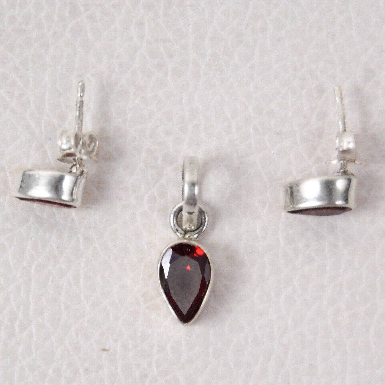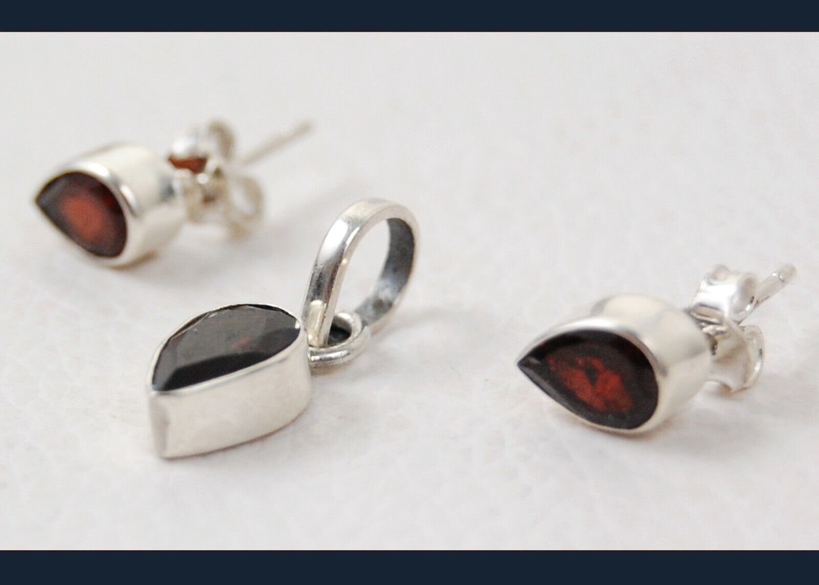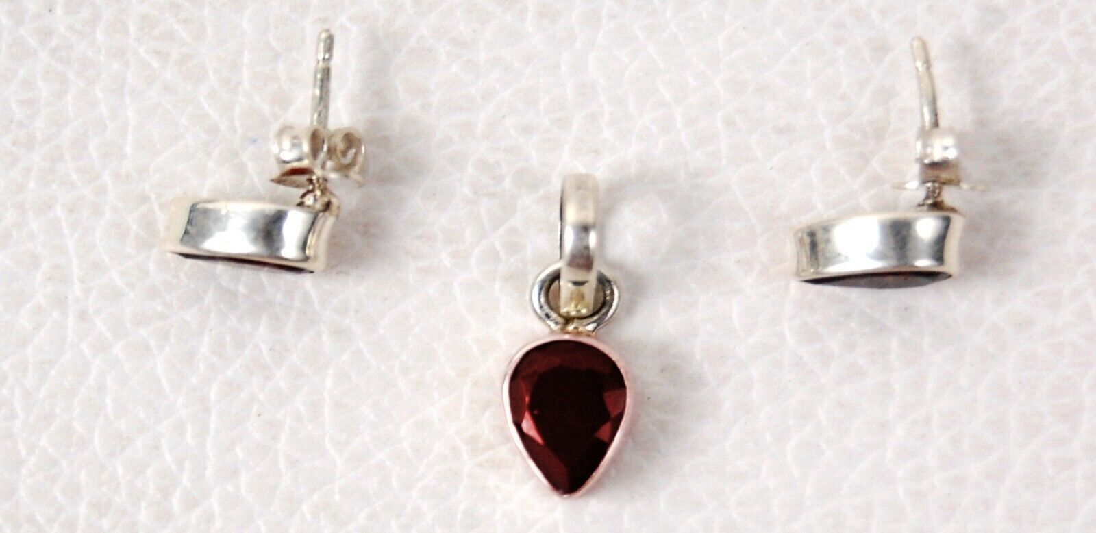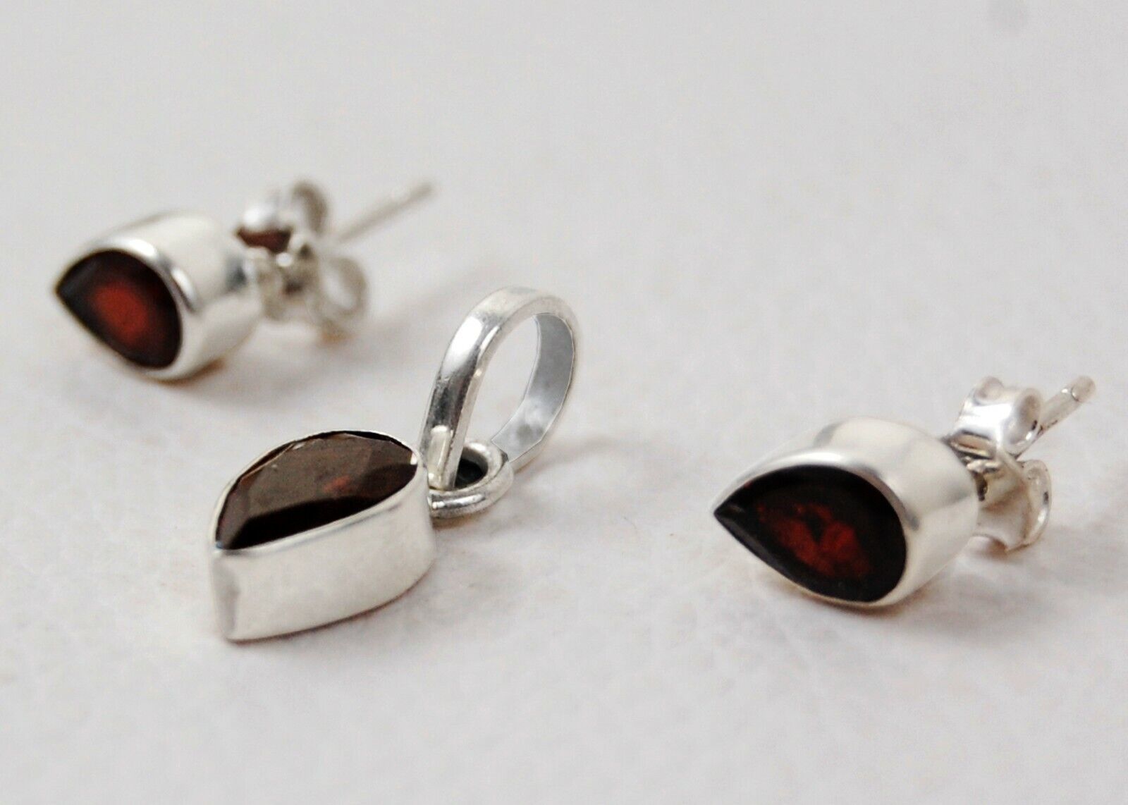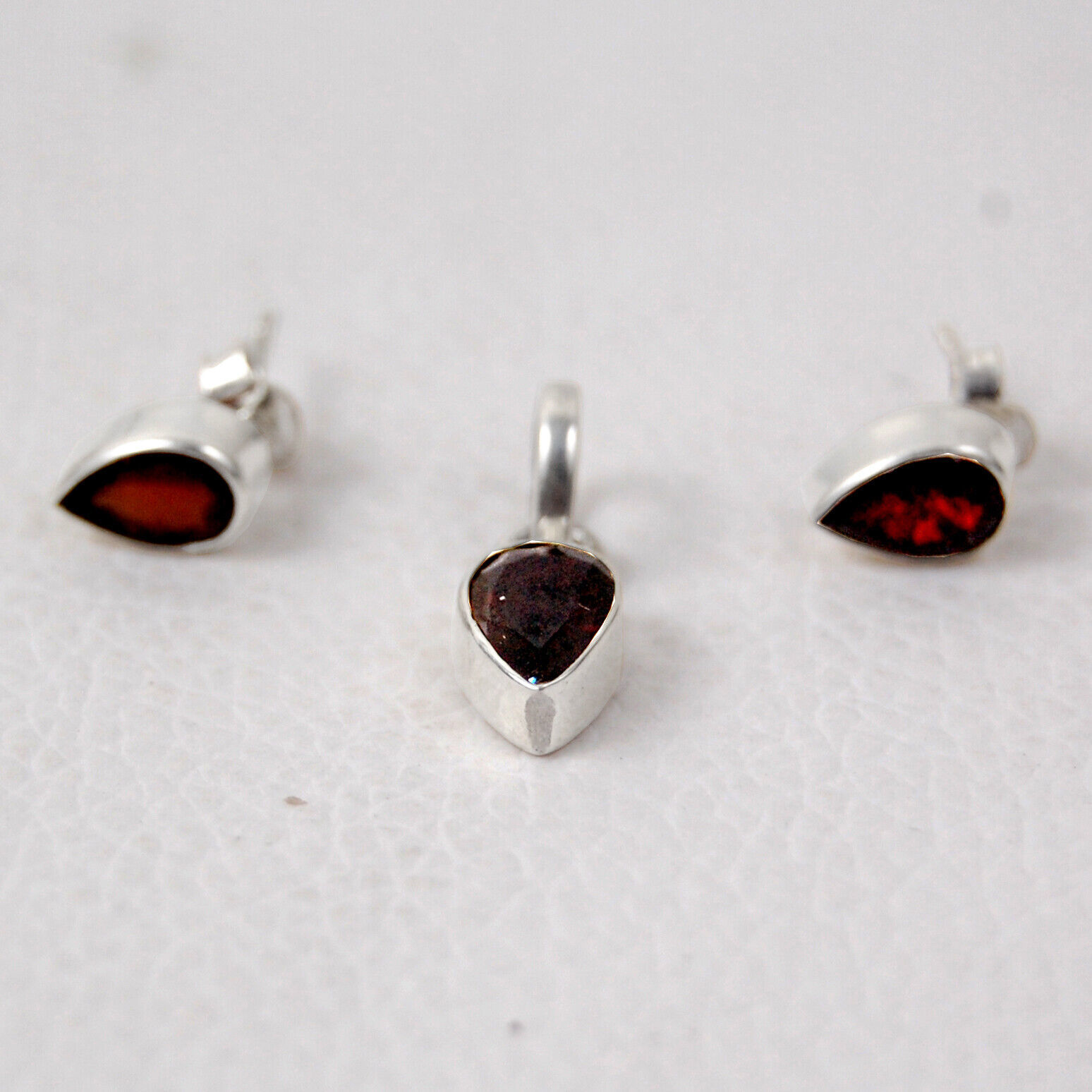 925 Argent Sterling Gemme Grenat Fait à la Main Collier Boucles Ensemble Cadeau