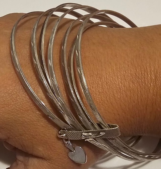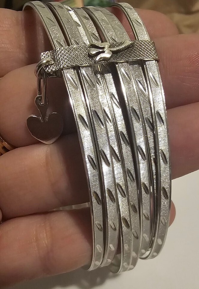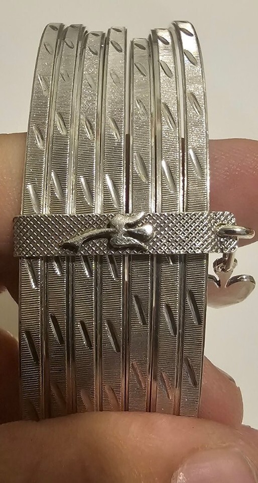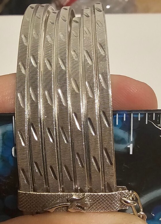 925 Silver Semanario 7 Etched Bracelets Bangles 3" Taxco Mexico