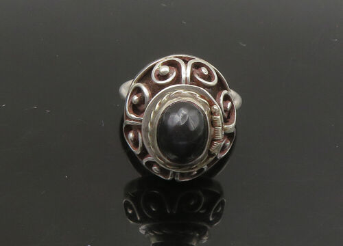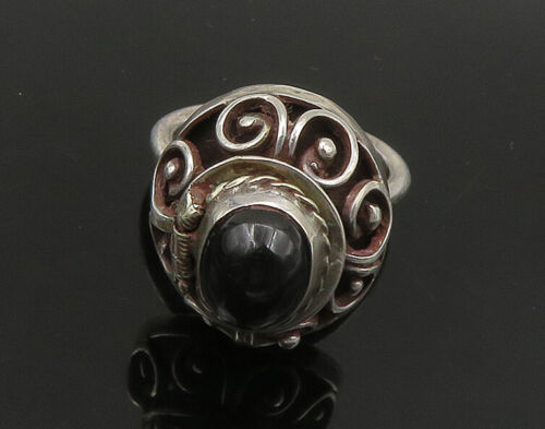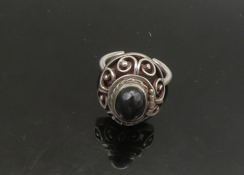 925 Silver - Vintage Black Onyx Adjustable Cocktail Ring Sz 8 (OPENS) - RG22954