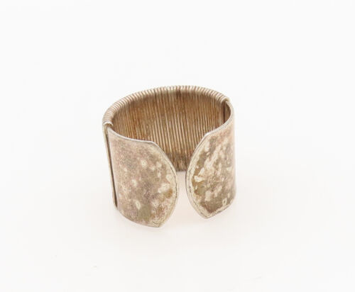 925 Silver - Vintage Coil Wrapped Broad Band Adjustable Ring Sz 7.5 - RG27239