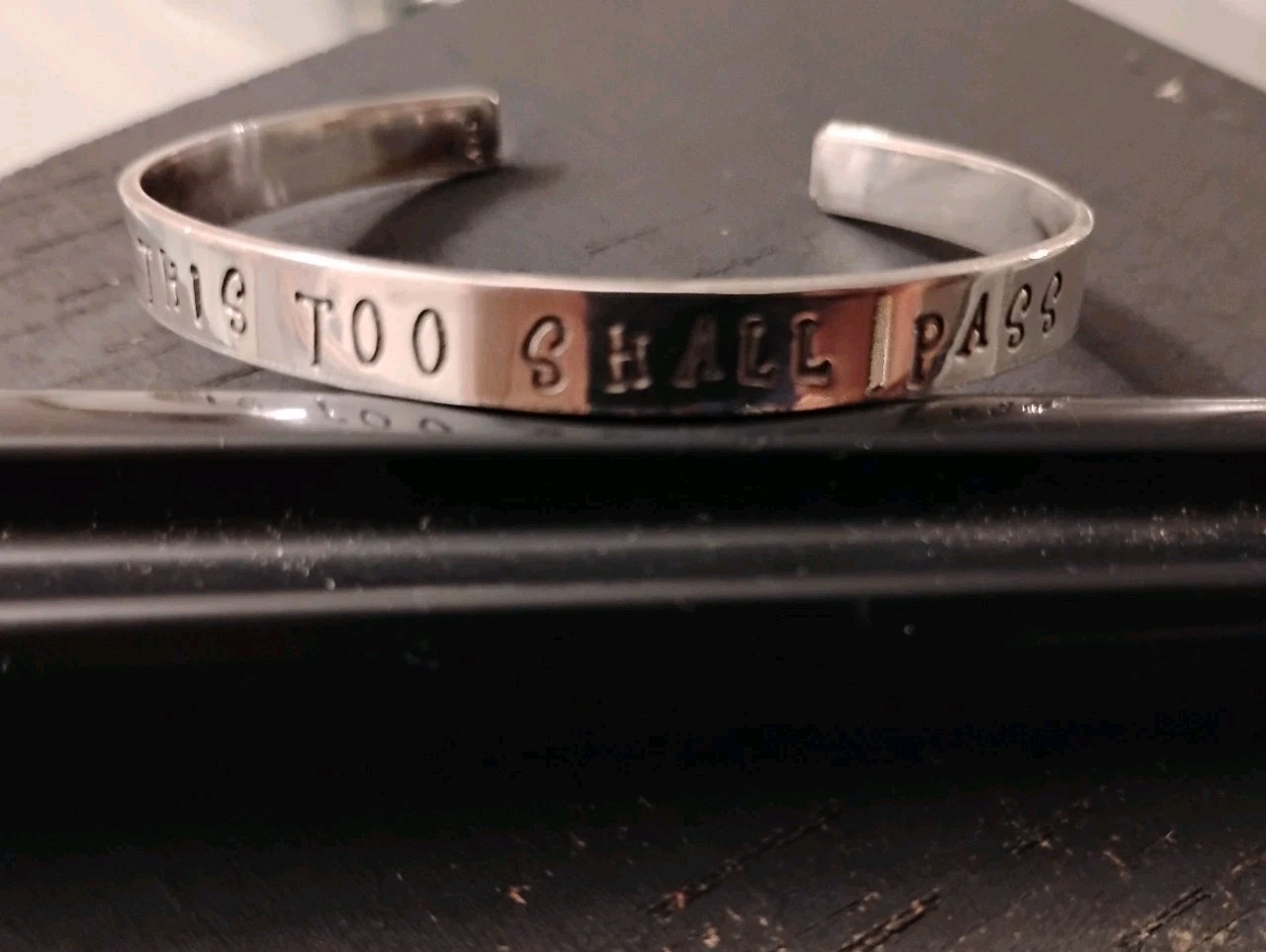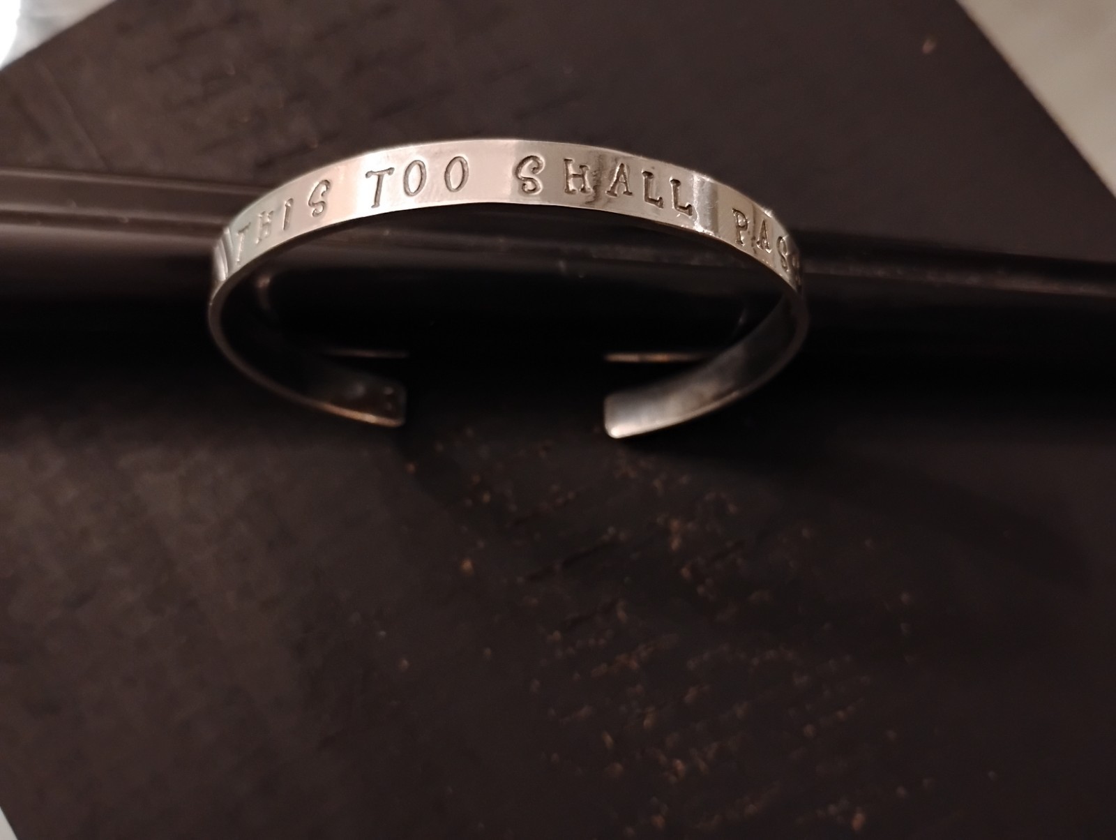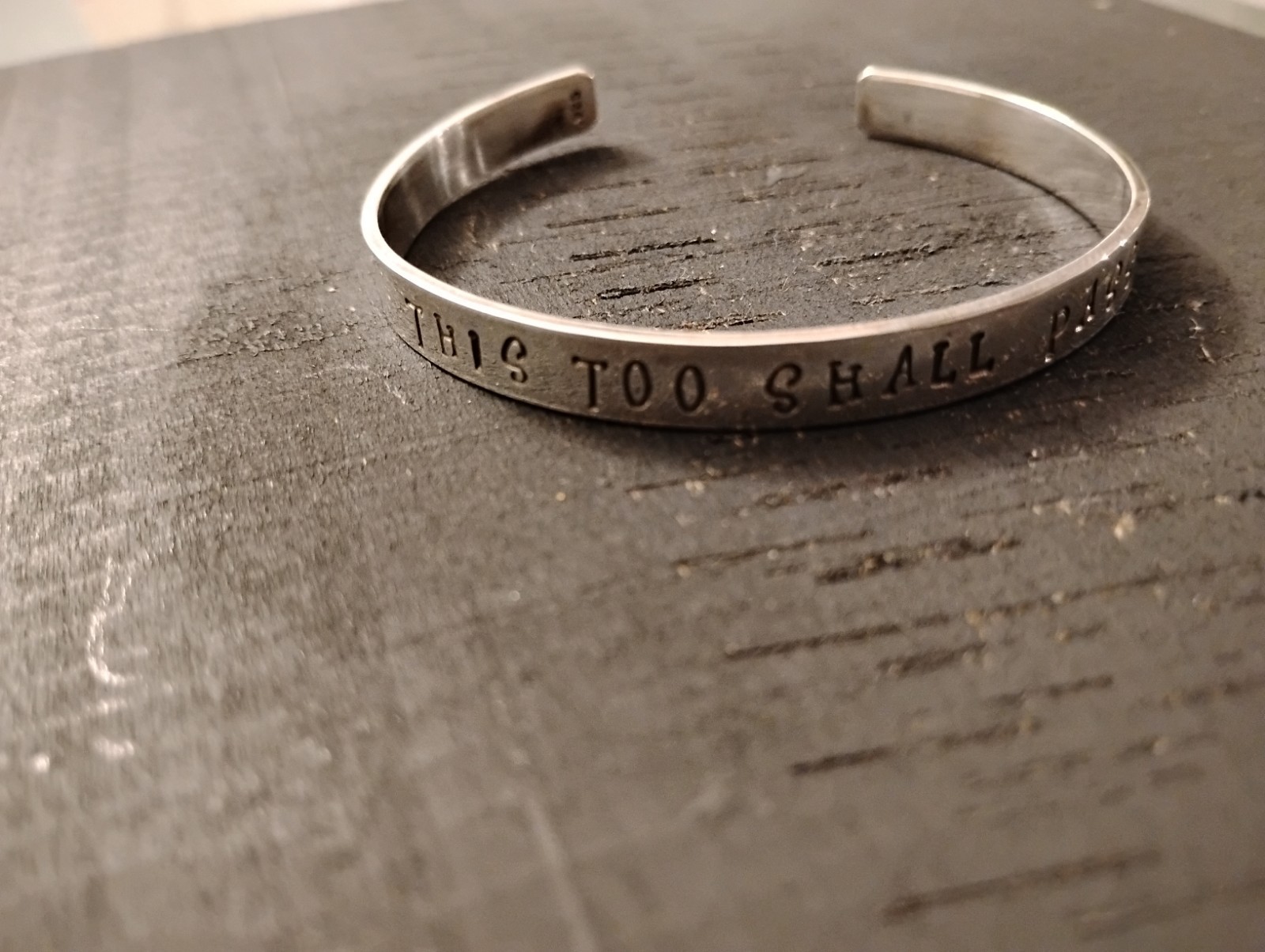 - 925 Sterling Silver 6.5 Mm Wide Cuff Bracelets "This Too Shall Pass" 6.68" in