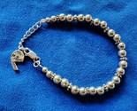 - 925 Sterling Silver 6 Mm Beaded 7.5 In Mother Charm Bracelet Free Shipping