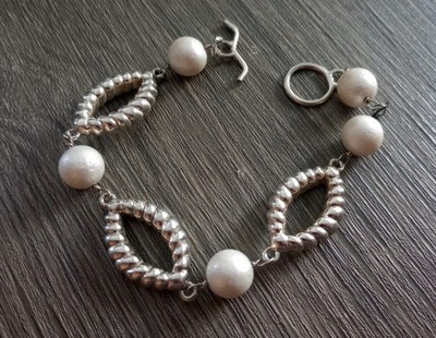 - 925 Sterling Silver 7.5" Beaded Toggle Link Bracelet Free Shipping