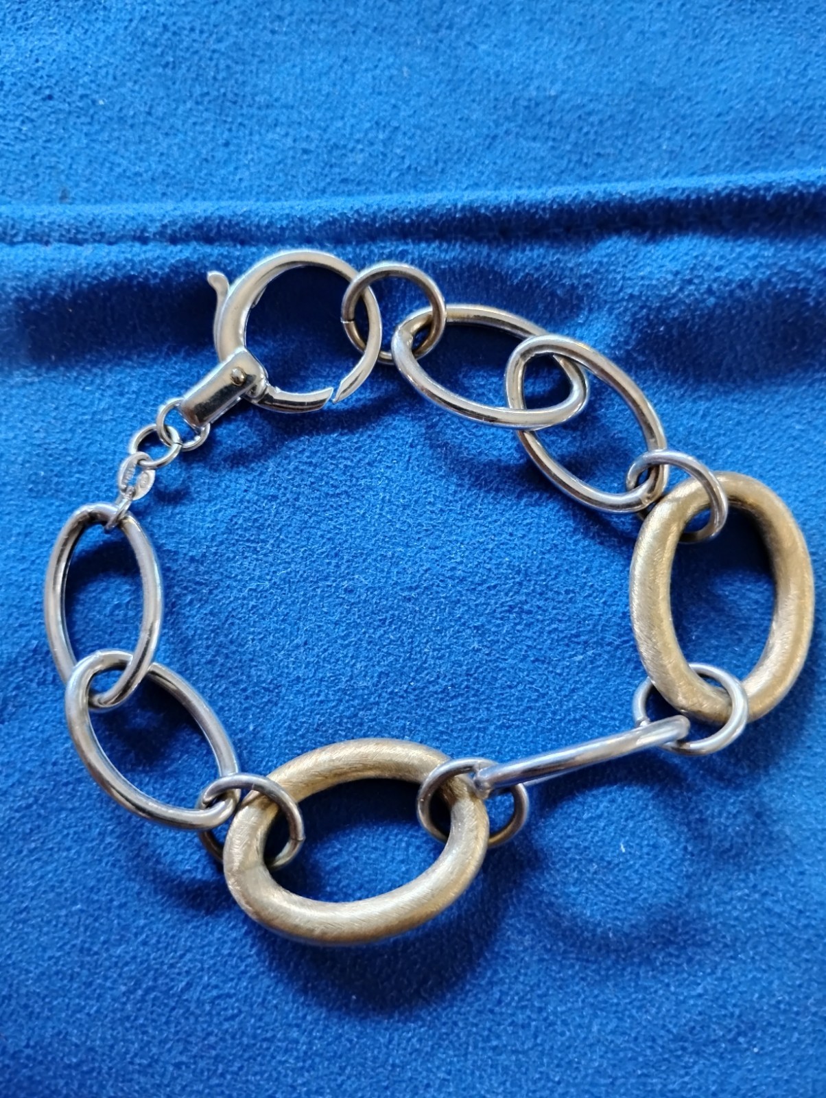 - 925 Sterling Silver 8 In Two Tone Chain Link Bracelet Free Shipping