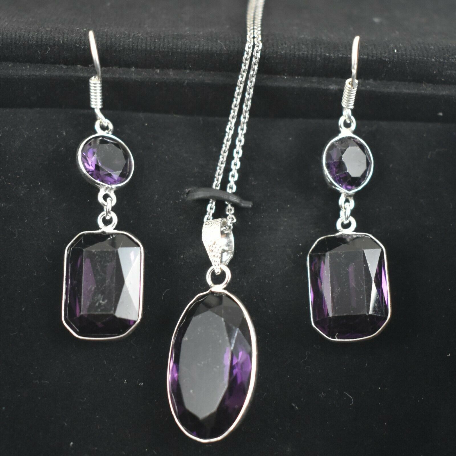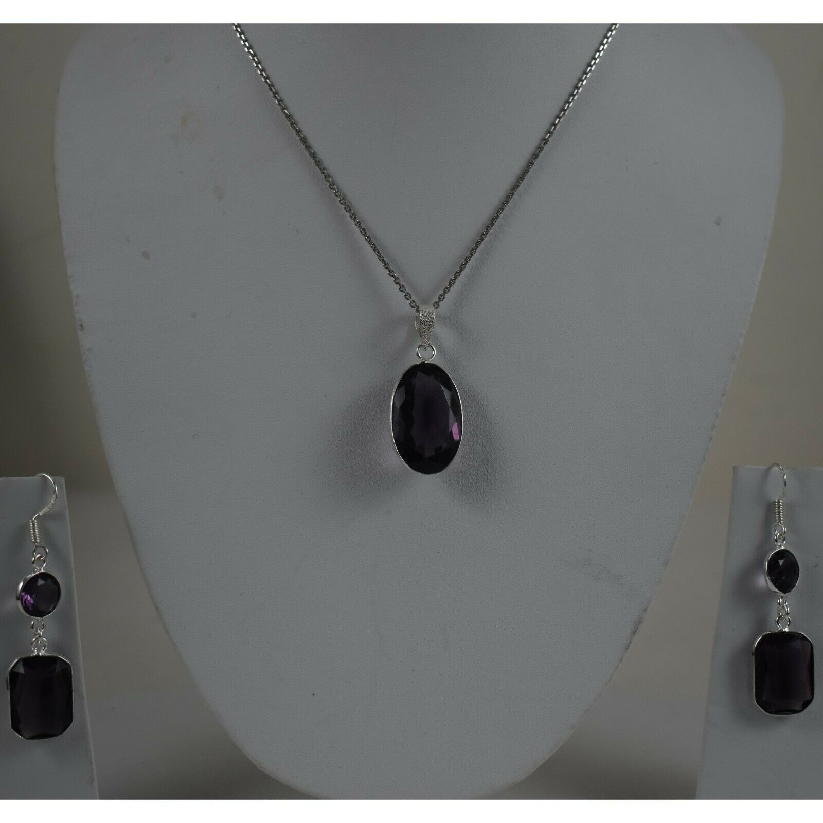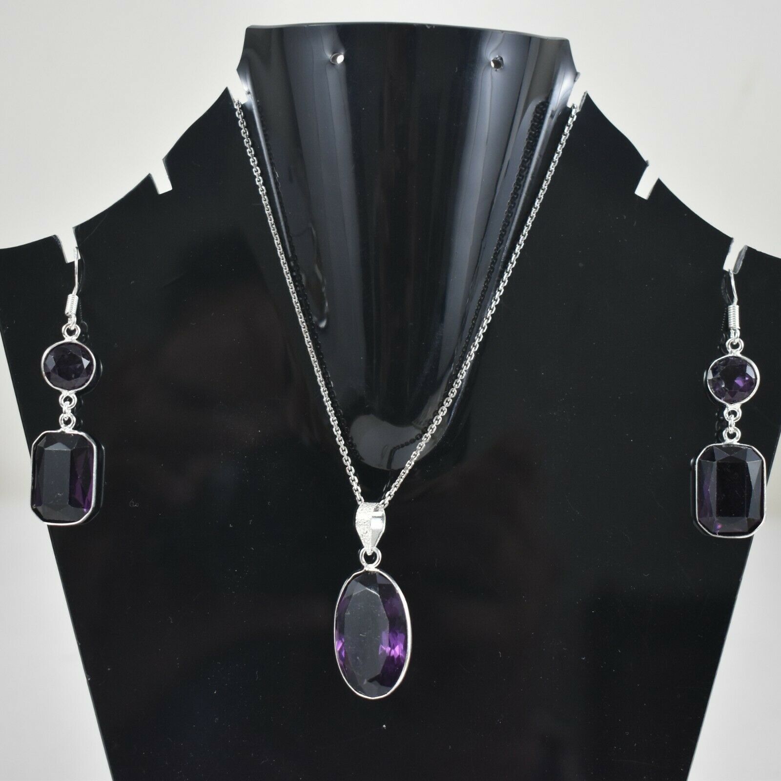 925 Sterling Silver Amehtyst Gems Handmade Necklace Earrings Women Gift SET-1069
