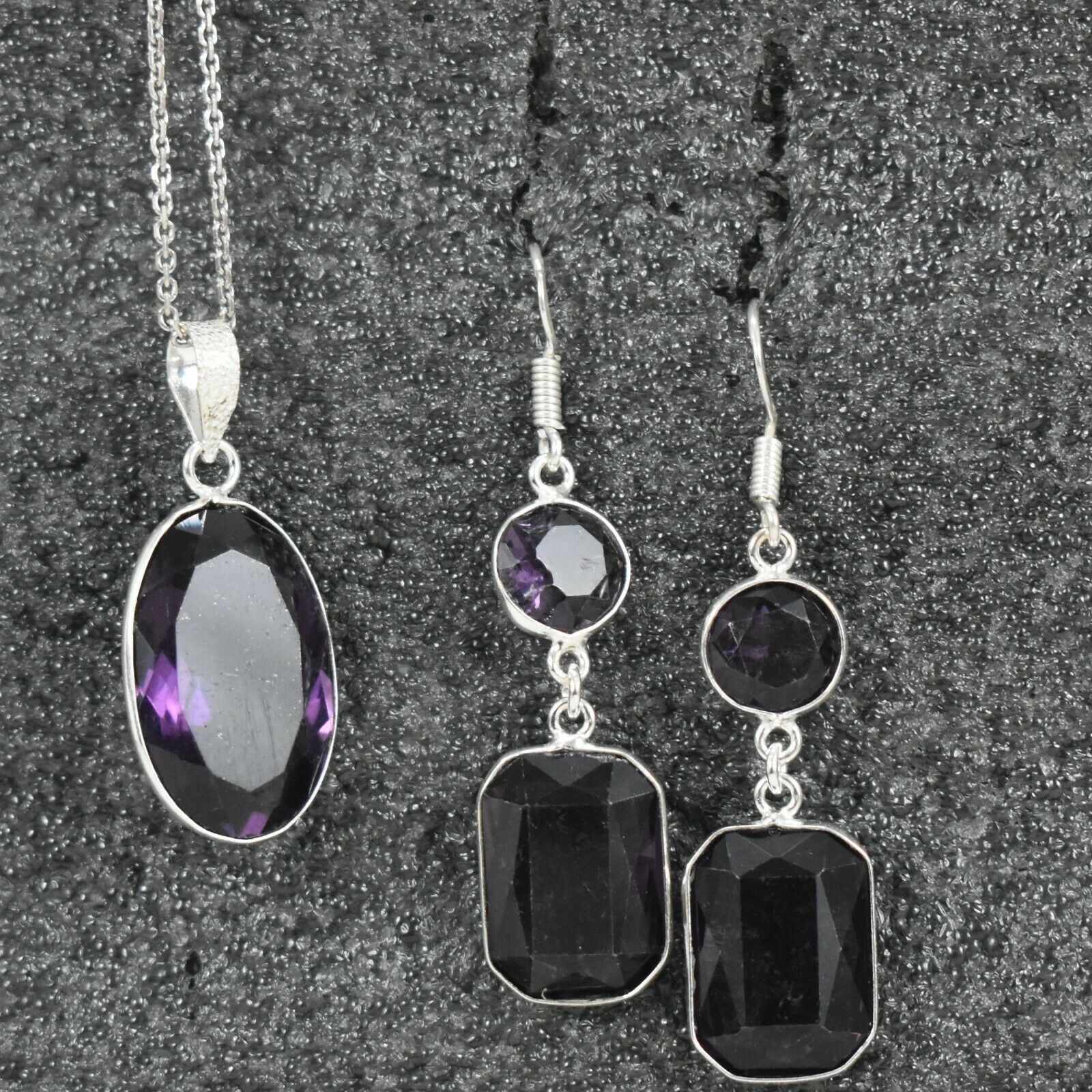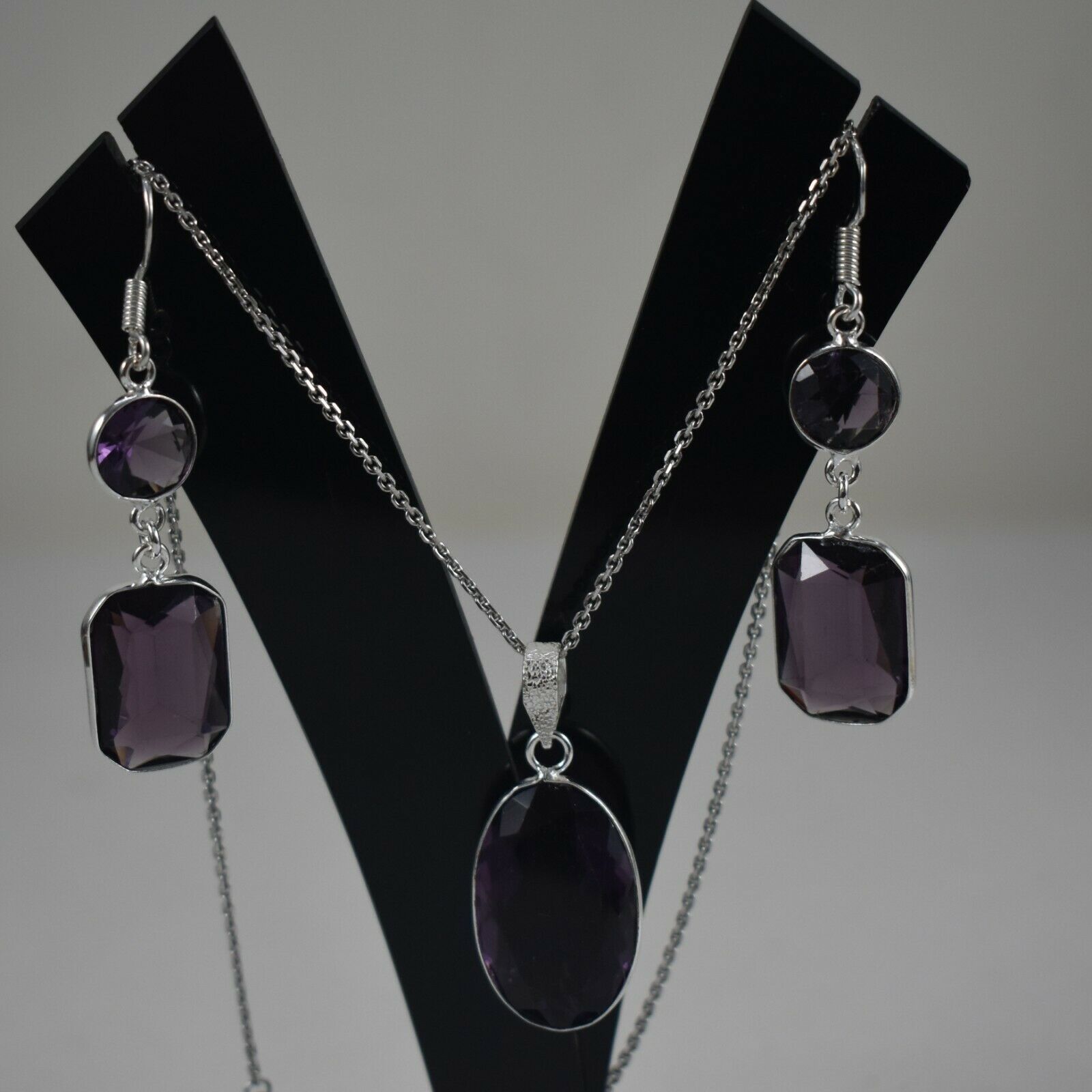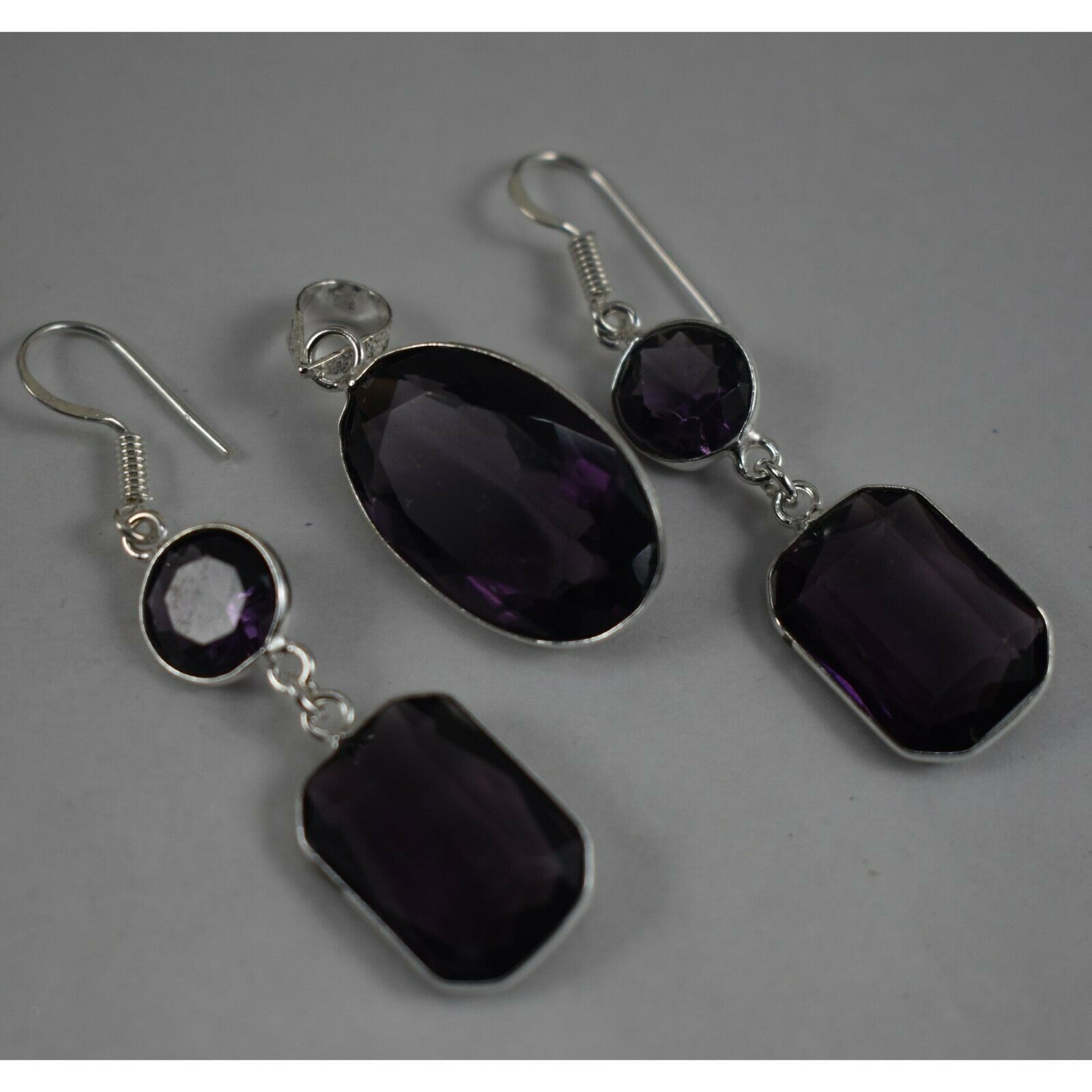 925 Sterling Silver Amehtyst Gems Handmade Necklace Earrings Women Gift SET-1069