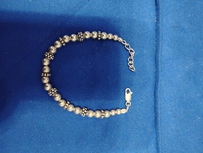 925 Sterling Silver Beaded Bracelet 6.5 In Long 5 Mm Wide Free Shipping