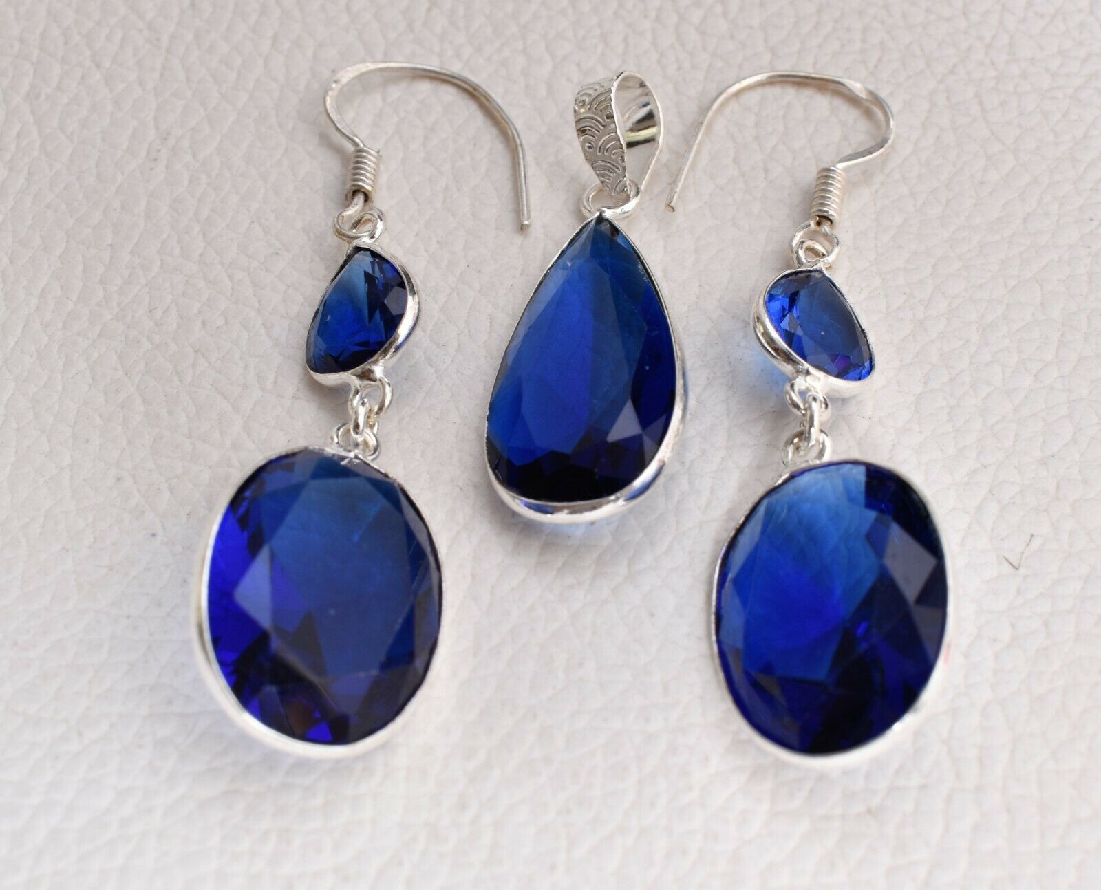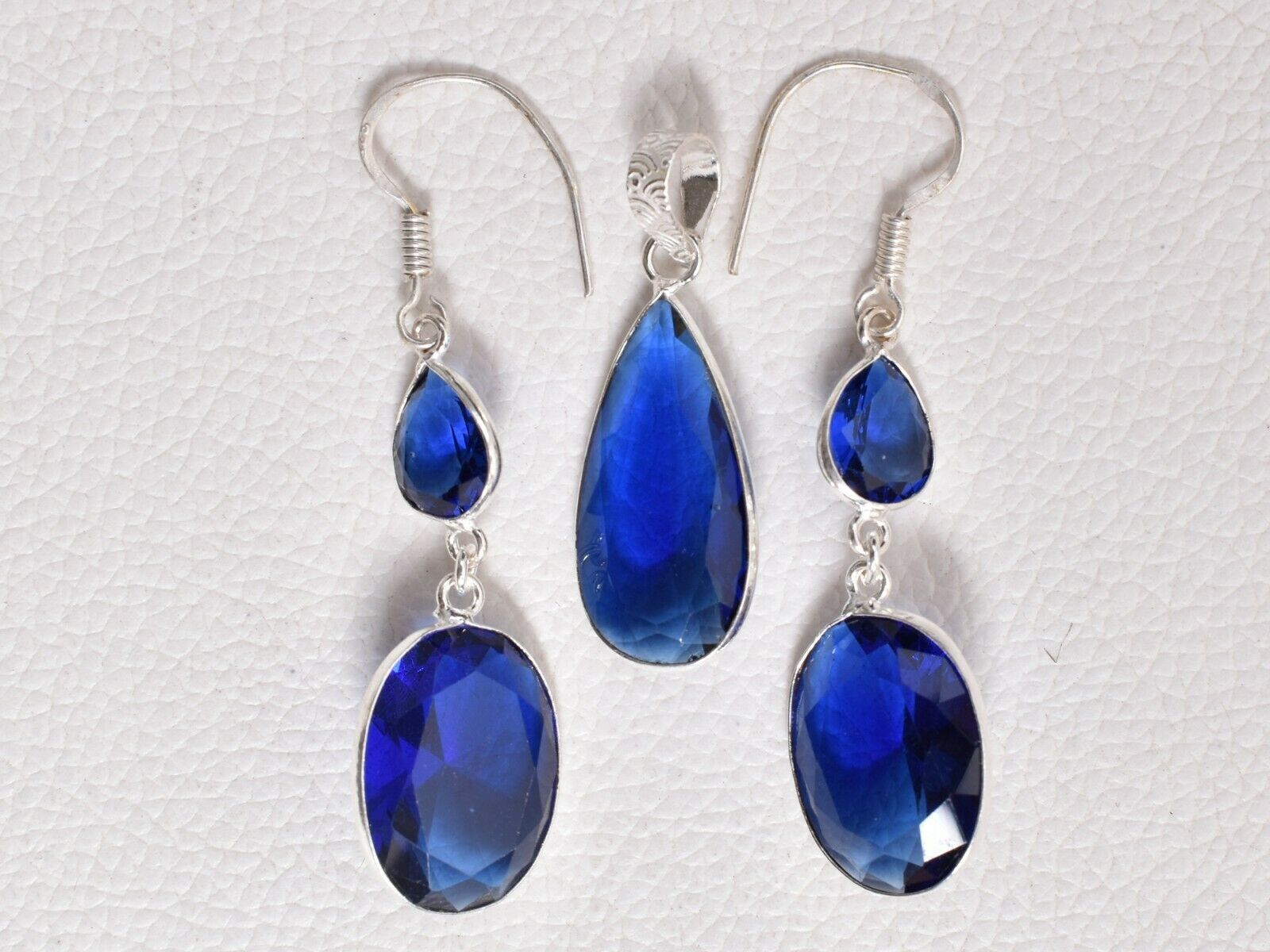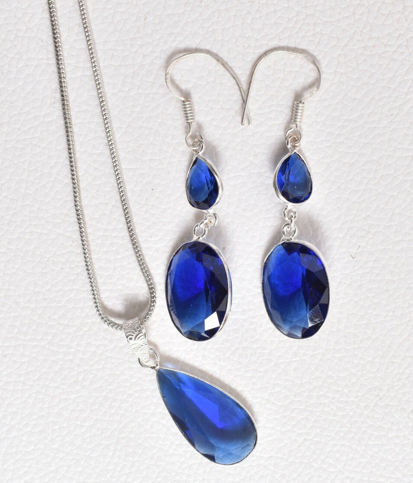 925 Sterling Silver Blue Topaz Gemstone Handmade Necklace Earrings Gift SET-1053