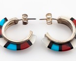 .925 Sterling Silver Coral/ Mother Of Pearl/Turquoise Half Crescent Earrings