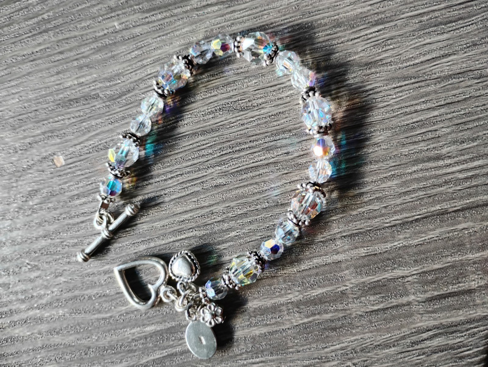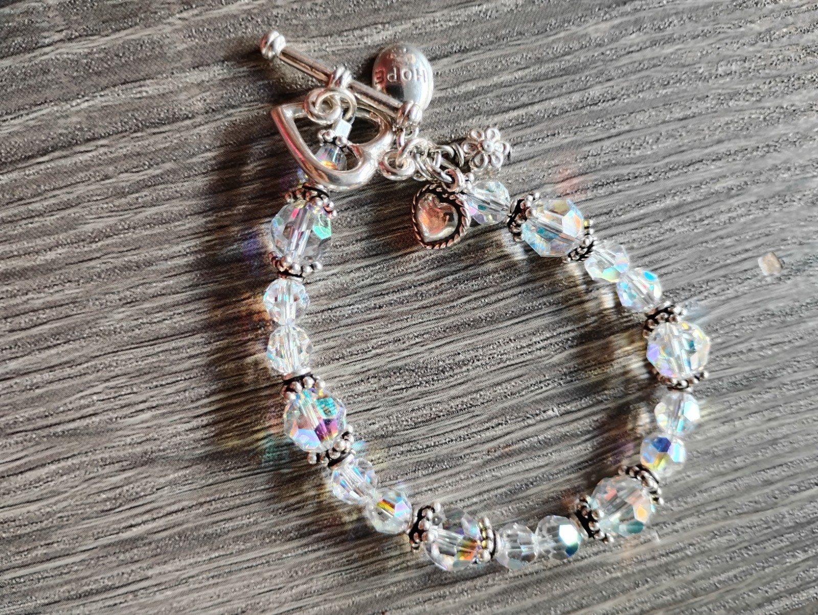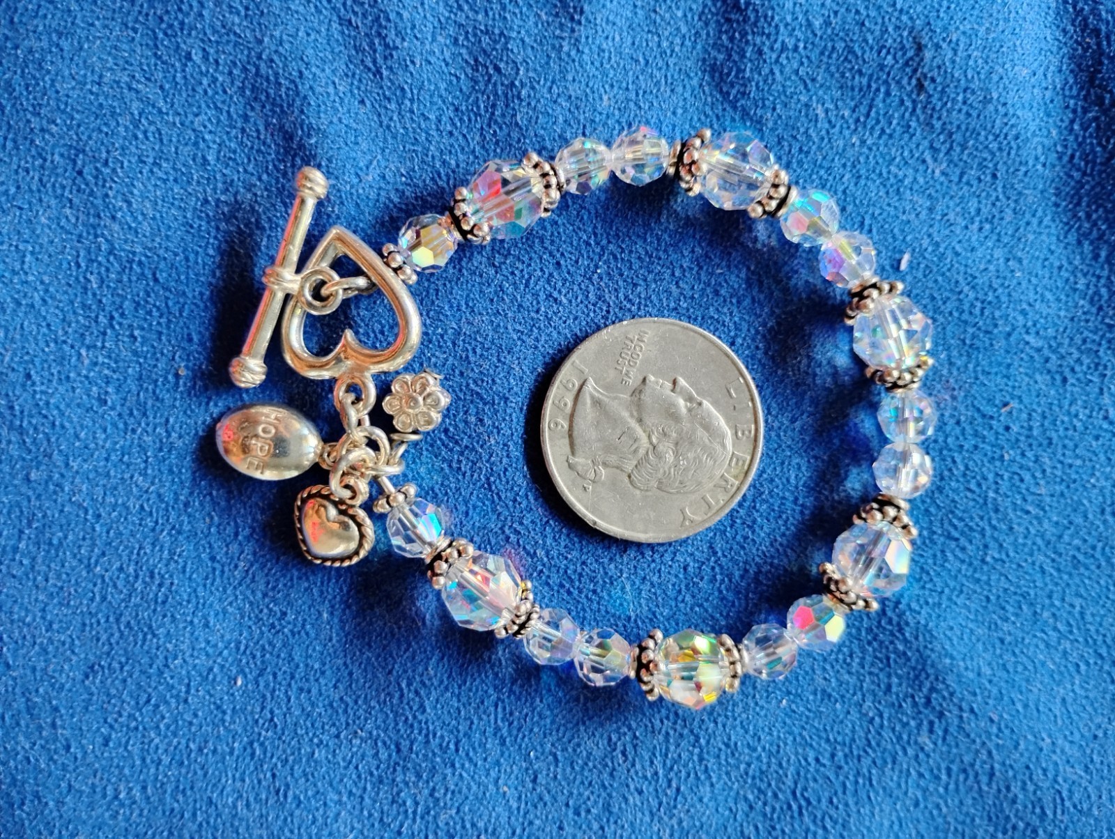 925 Sterling Silver Crystal Beaded Toggle Link Heart Bracelet 7 In Free Shipping