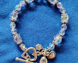 - 925 Sterling Silver Crystal Beaded Toggle Link Heart Bracelet 7 In Free Shipping