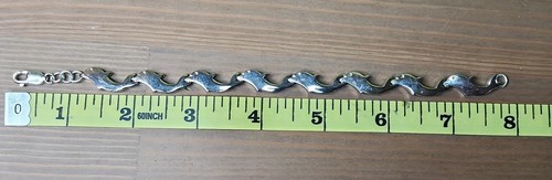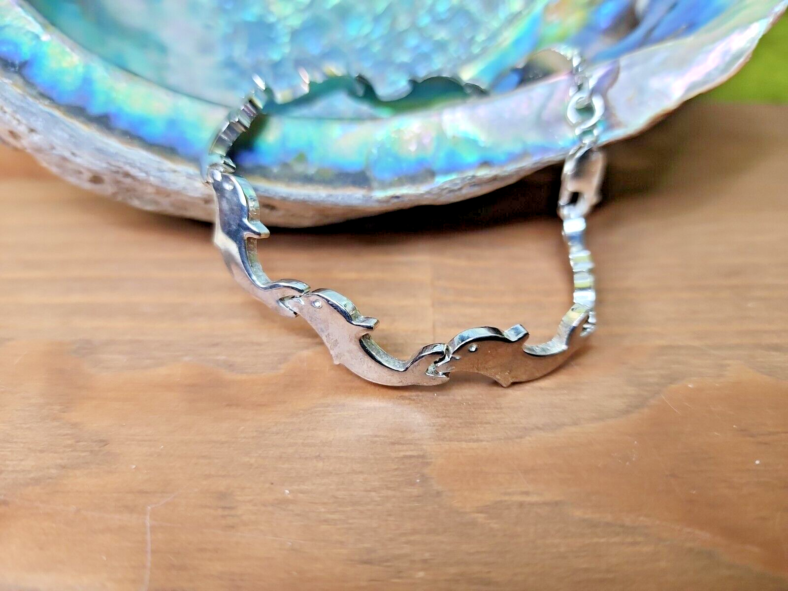925 Sterling Silver Dolphin Motif Fetish Link Chain Bracelet VTG 7.75" A 17.83g