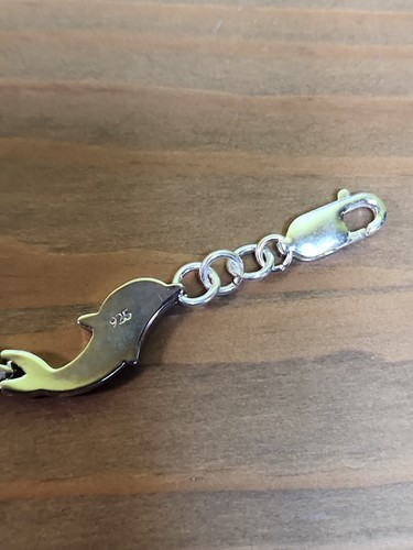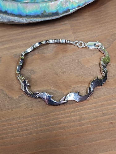 - 925 Sterling Silver Dolphin Motif Fetish Link Chain Bracelet VTG 7.75" A 17.83g