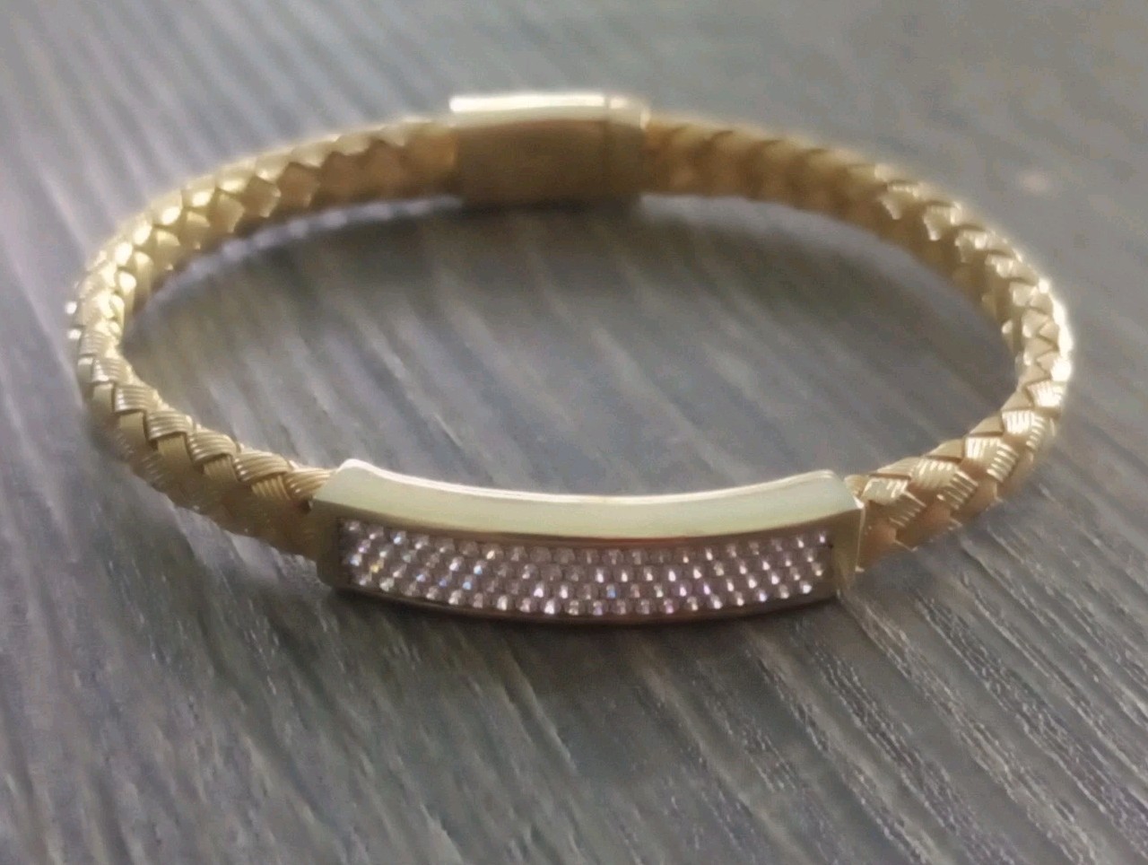 - 925 Sterling Silver Gold Tone Woven8 mm Wide 7-in Long Bracelet Free Shipping